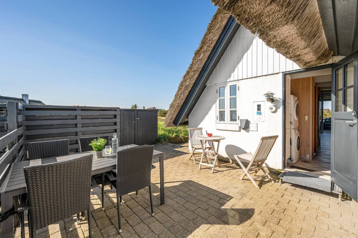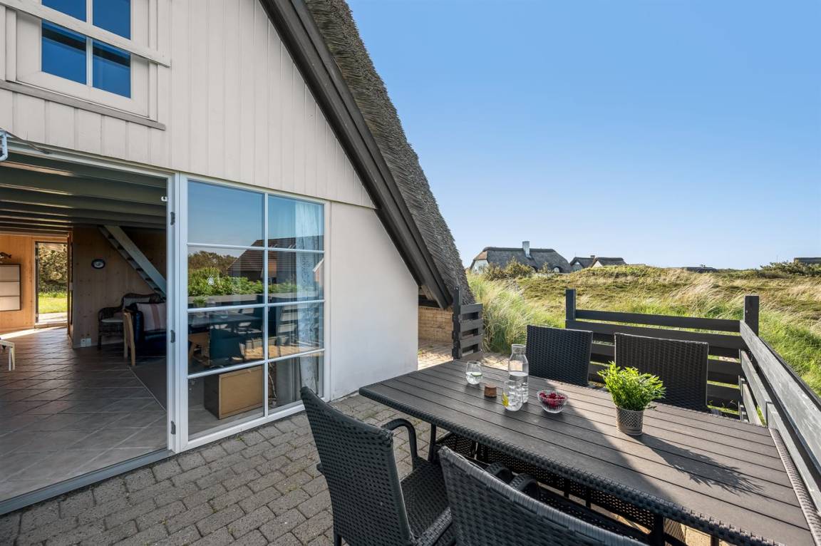 Draußen ist das Ferienhaus ideal für Kinder und junggebliebene Seelen - mit Sandkasten, Schaukeln und einem eingegrabenen Trampolin. Wenn ihr mehr Entspannung als Spiel mögt, laden die abgeschirmten Terrassen dazu ein, die Ruhe, die schöne Dünenlandschaft und die frische Meeresluft zu genießen und einzuatmen.