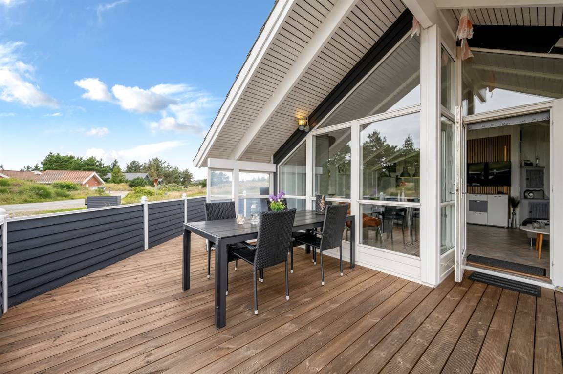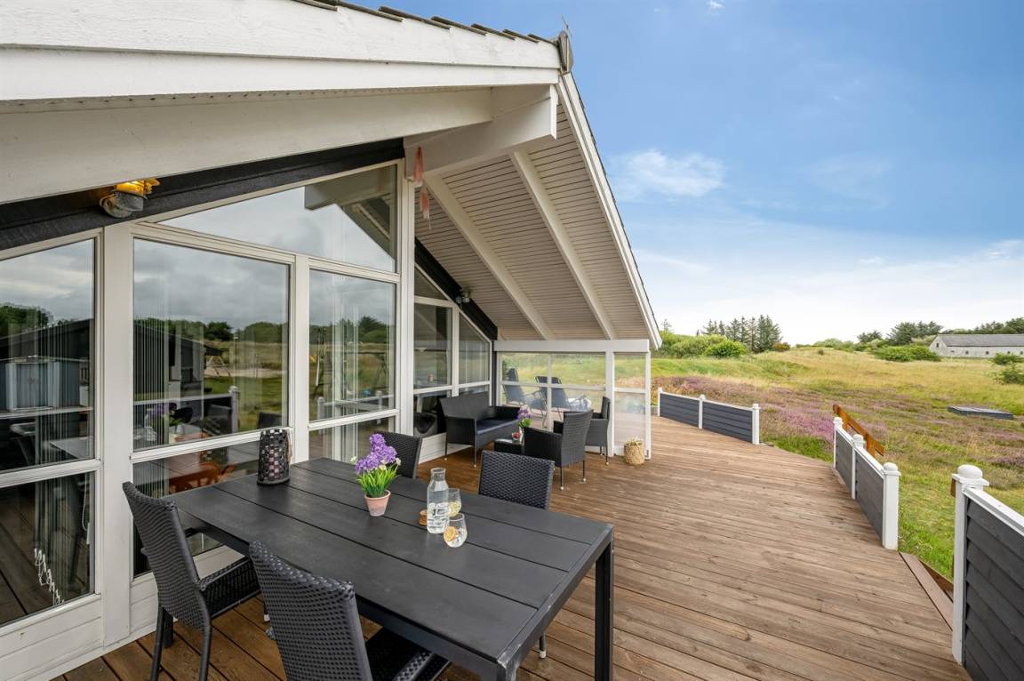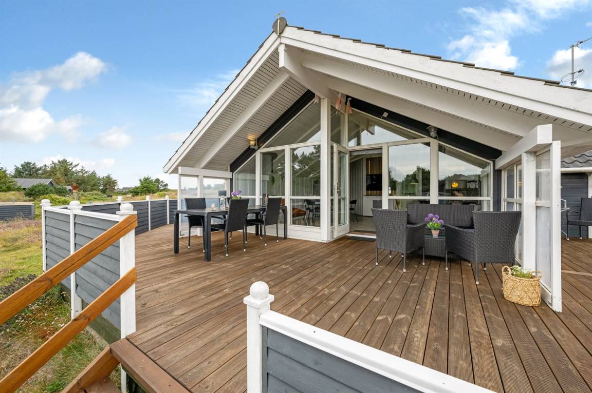 Auf einem großen Dünengrundstück, nur 250 m vom Ringkøbing Fjord und 1000 m von der Nordsee entfernt, liegt dieses schöne und helle Ferienhaus mit Whirlpool. Sowohl vom Haus als auch vom Grundstück haben Sie Aussicht auf den Fjord. Das Haus wurde 2022 wie folgt modernisiert: Neue Teppiche in den Schlafzimmern, das Wohnzimmer und die Zimmer sind neu gestrichen, es gibt eine neue Couch, neue Lampen und einen neuen Fernseher im Wohnzimmer.