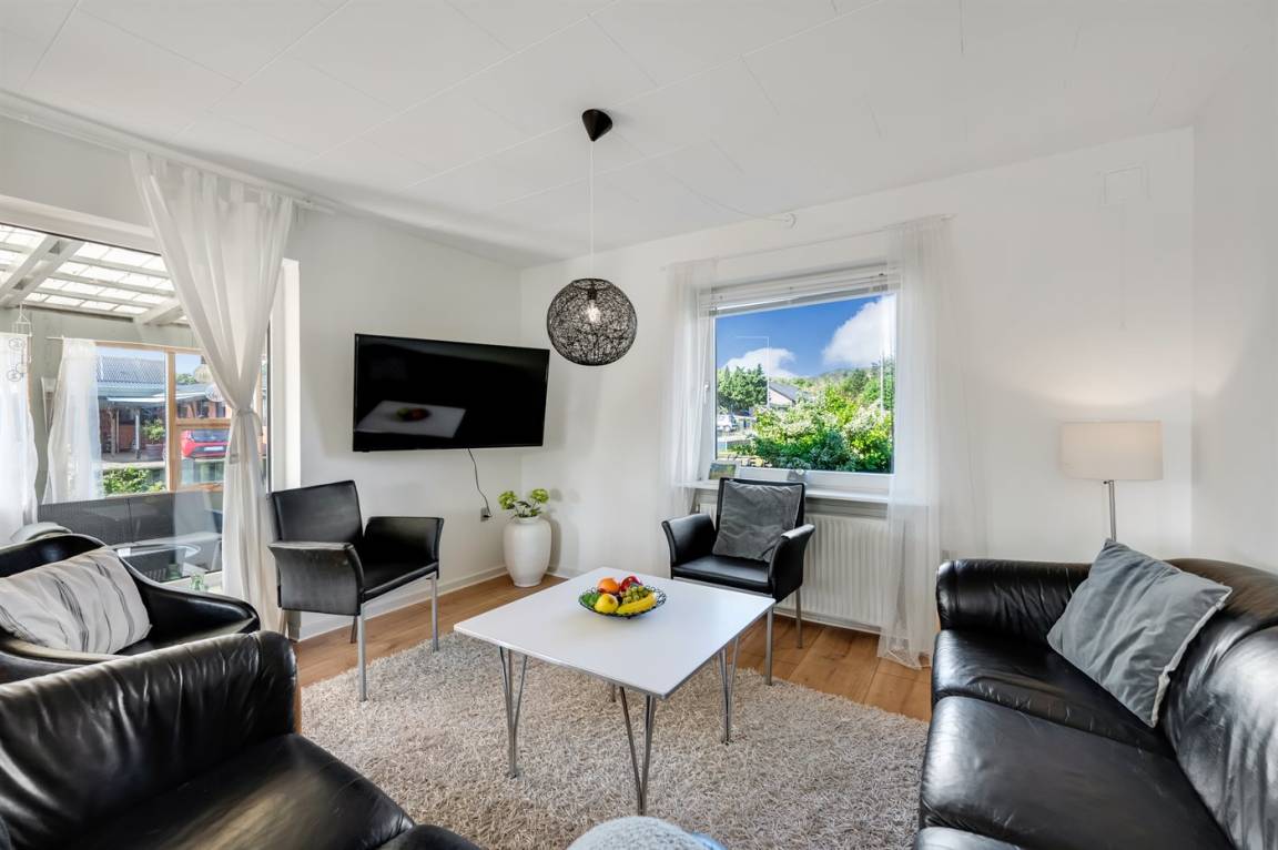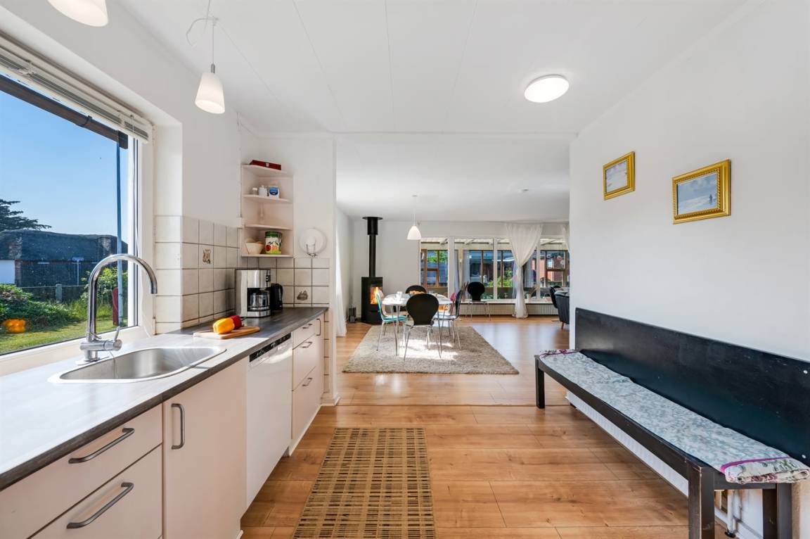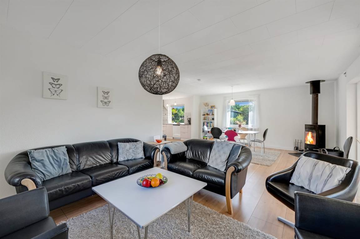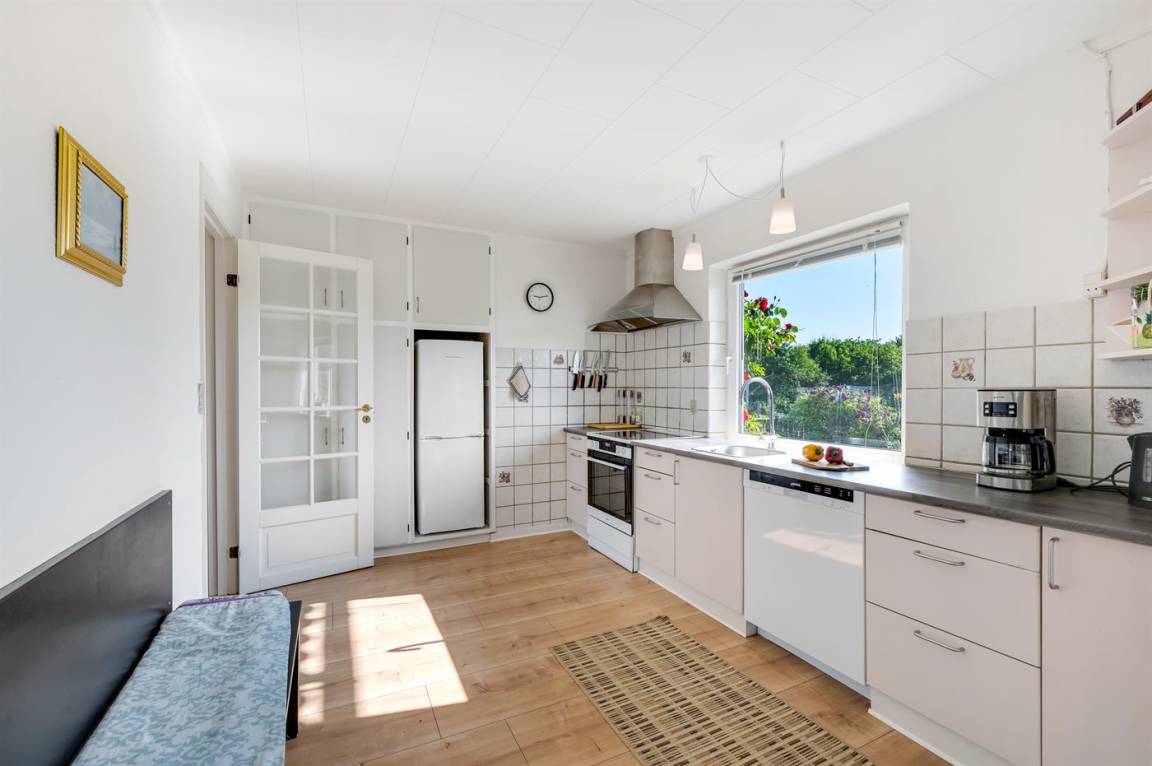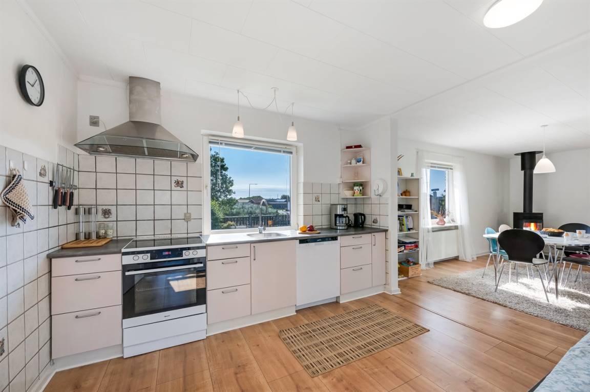 DraußenDie Ferienunterkunft liegt auf einem 558 m² großen Naturgrundstück. Die Entfernung zum Meer beträgt 900 m. Die Entfernung zum Fjord beträgt 500 m. Die nächste Einkaufsmöglichkeit liegt 500 m entfernt. Es steht ein offenes Terrassenareal zur Verfügung.Es steht eine Garage zur Verfügung. Parkplatz auf dem Grundstück.