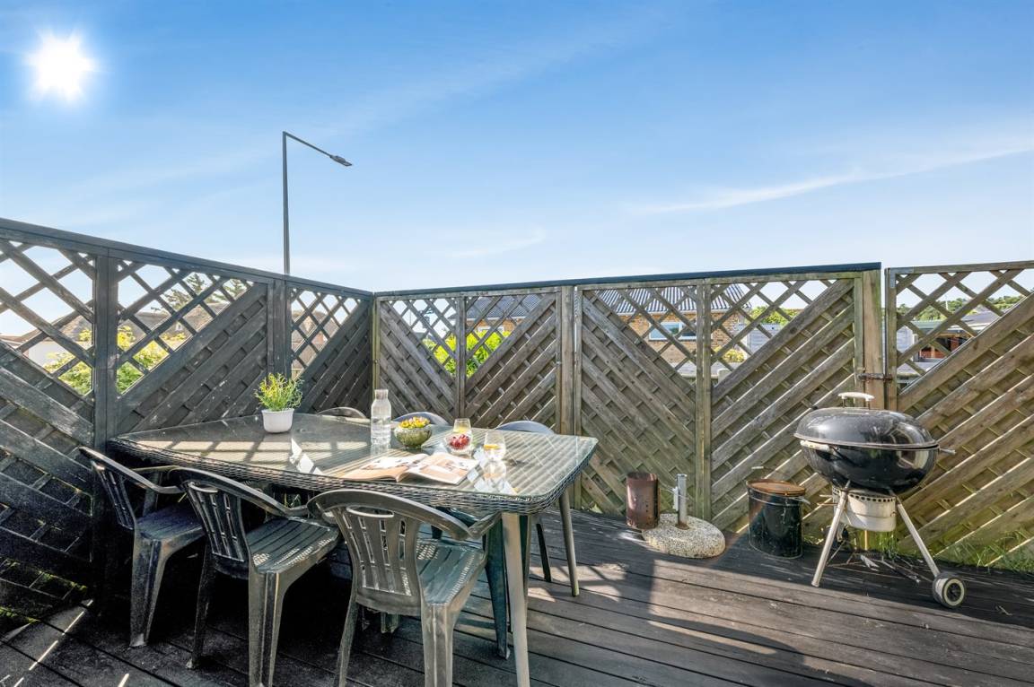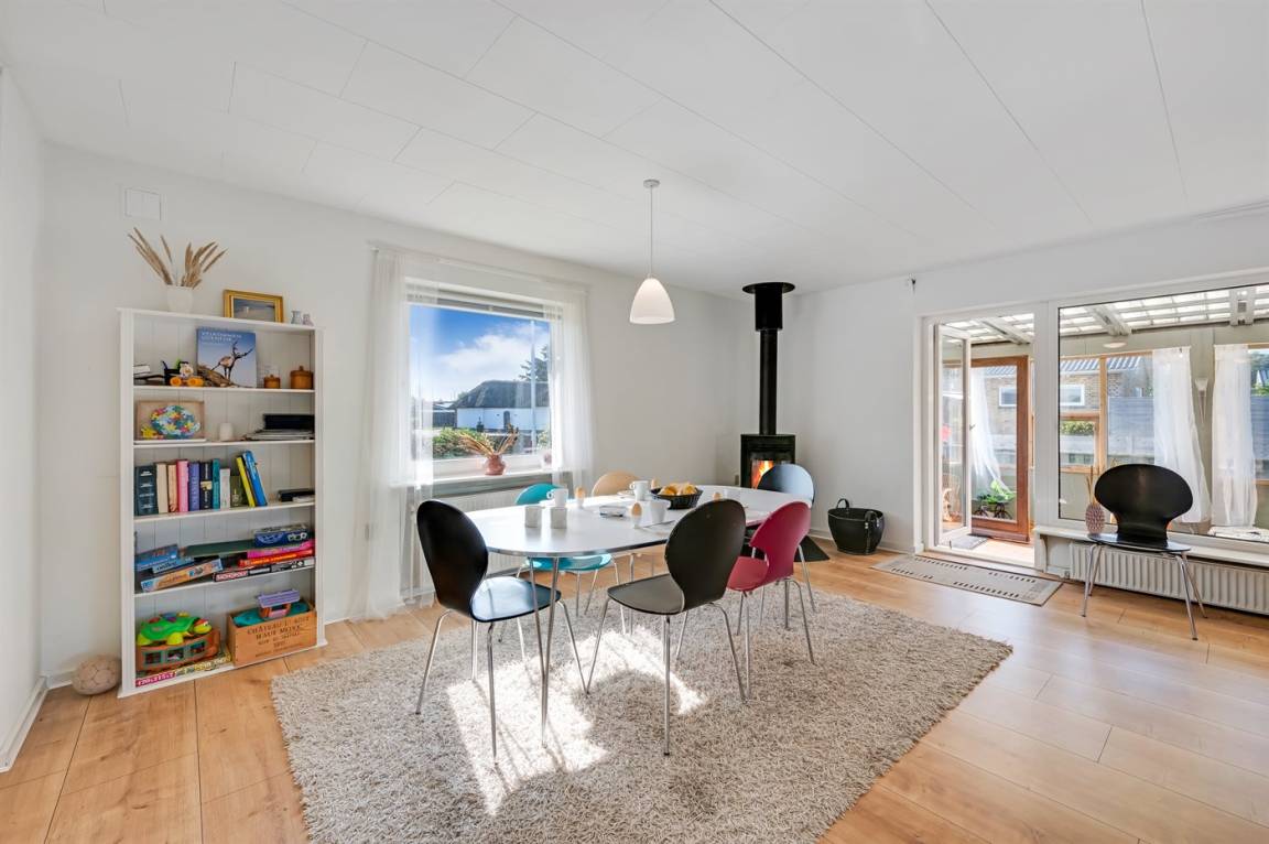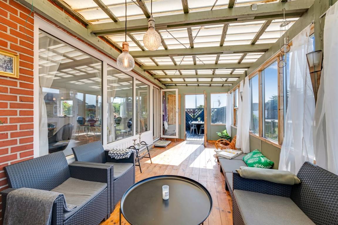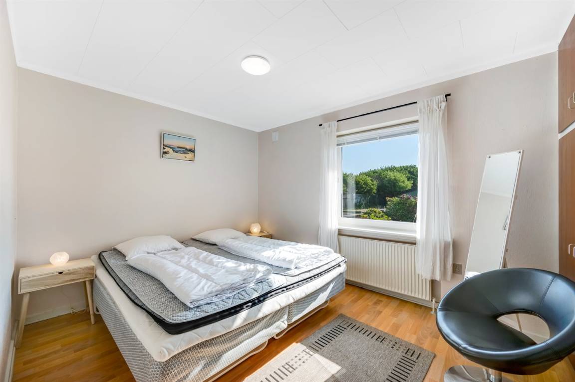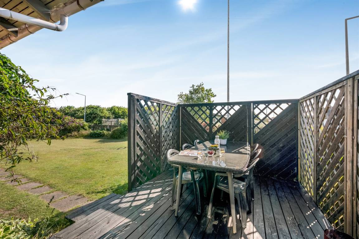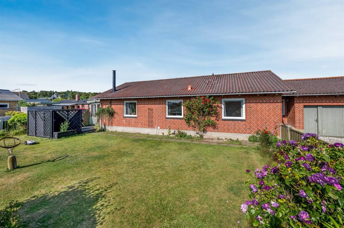 Der geschlossene Garten und die Terrasse bieten dir die Möglichkeit, deinen Urlaub in Ruhe und Frieden zu genießen – mit Blick auf Sonnenaufgänge und Sonnenuntergänge. Das Haus wird mit günstiger und umweltfreundlicher Fernwärme beheizt, die aus Wind- und Solarenergie erzeugt wird. In der Garage hast du außerdem viel Platz zur Aufbewahrung von Surfausrüstung.