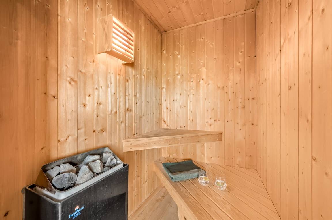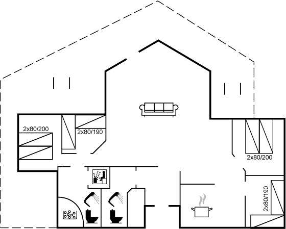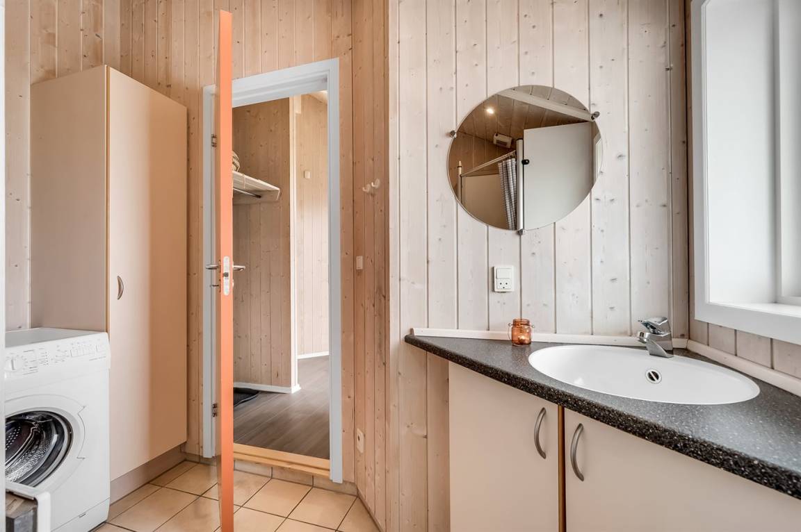 Die Küche des Ferienhauses ist komplett ausgestattet mit Kühlschrank (inkl. 20 l Gefrierfach), 4 Cerankochfeldern, Backofen und Mikrowelle sowie Geschirrspüler. Es gibt 2 Schlafzimmer mit Doppelbetten, zwei Schlafzimmer mit jeweils zwei Einzelbetten sowie ein offenes Obergeschoss. Es gibt 2 Badezimmer mit Fußbodenheizung – eines mit Whirlpool, Sauna und Duschnische und das andere mit Duschnische. Hier findest du auch die Waschmaschine und den Wäschetrockner des Hauses.