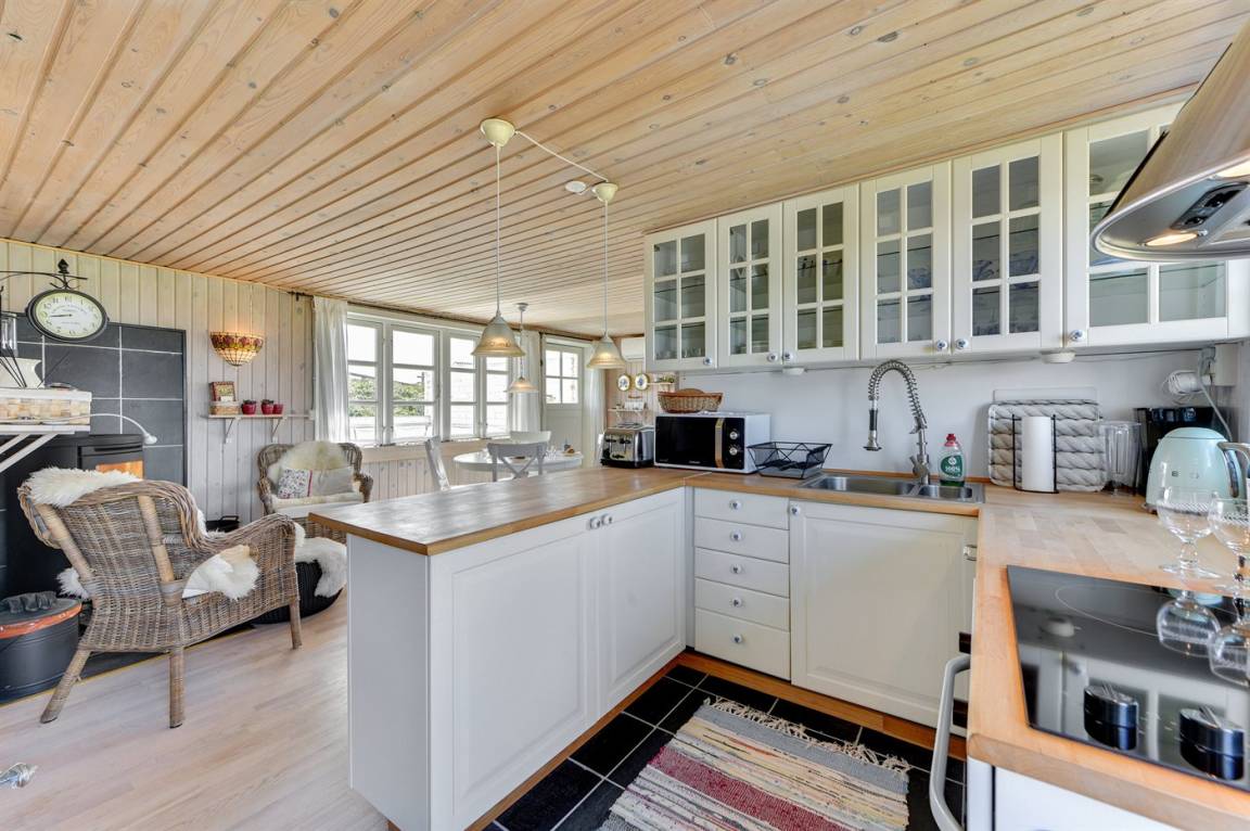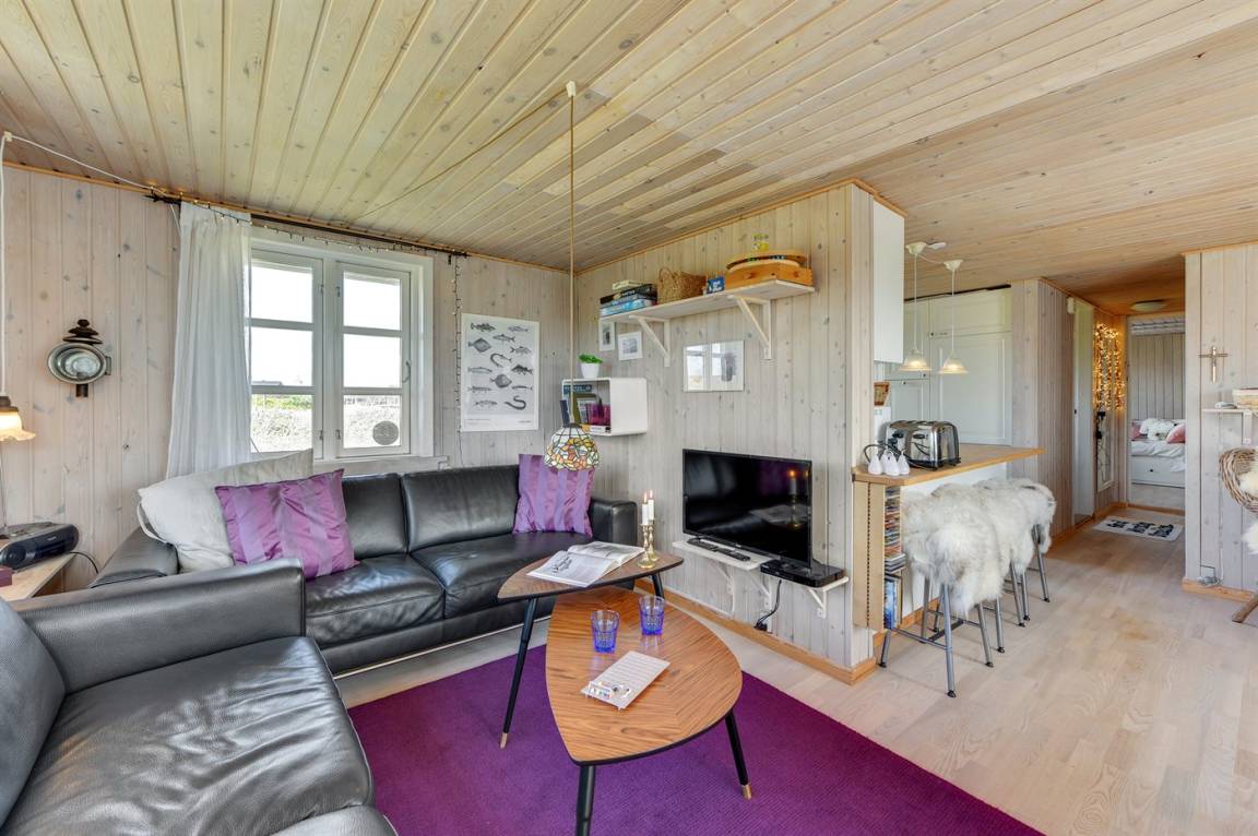 DraußenDie Ferienunterkunft liegt auf einem 1275 m² großen Naturgrundstück. Die Entfernung zum Meer beträgt 200 m. Die Entfernung zum Fjord beträgt 1500 m. Die nächste Einkaufsmöglichkeit liegt 1000 m entfernt. Es steht ein offenes Terrassenareal zur Verfügung. Parkplatz auf dem Grundstück.