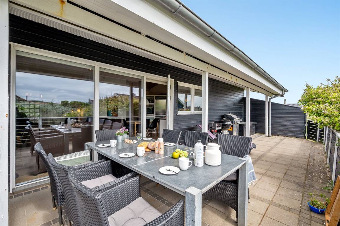 DraußenDie Ferienunterkunft liegt auf einem 1250 m² großen Naturgrundstück. Die Entfernung zum Meer beträgt 200 m. Die nächste Einkaufsmöglichkeit liegt 1800 m entfernt. In einem Abstand von 17000 m gibt es einen Golfplatz. Es steht ein 140 m² geschlossenes Terrassenareal zur Verfügung. Davon sind 50 m² überdacht. Geräteraum. Schaukel. Sandkasten.An Sommerabenden sorgt der Außenkamin für eine gemütliche Atmosphäre. Es steht ein Carport zur Verfügung. Es ist ein Ladestecker für Elektroautos installiert. CEE Stecker. Parkplatz auf dem Grundstück.