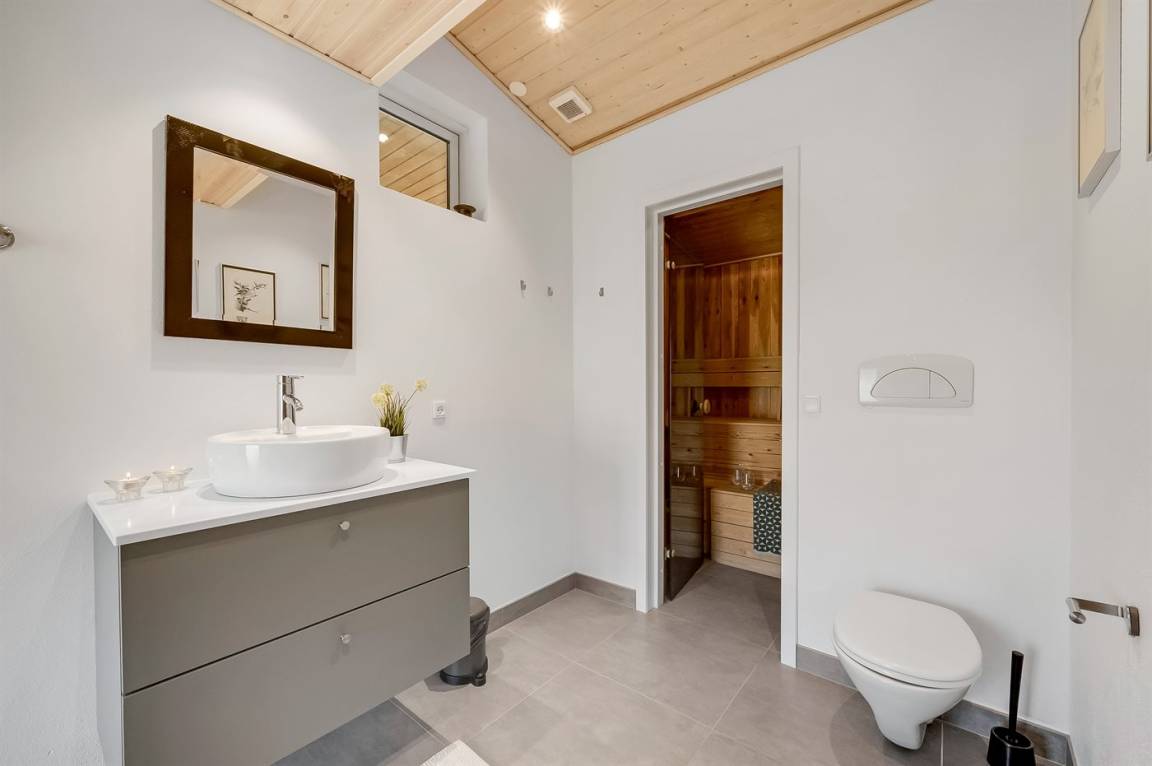WC und BadEs gibt 2 Badezimmer mit Duschnische und 2 Toiletten. Fußbodenheizung in 2 Badezimmern. Es steht eine Sauna zur Verfügung in der Sie sich so richtig entspannen können.
