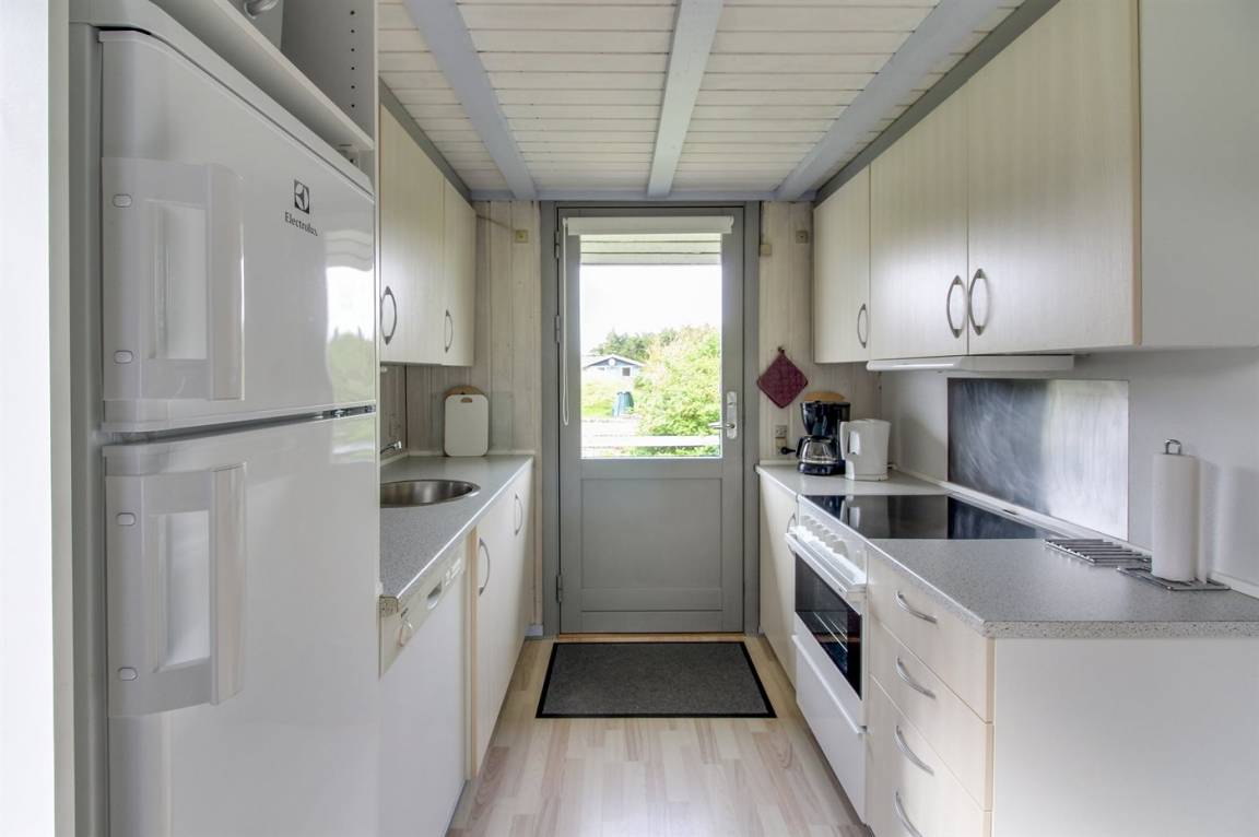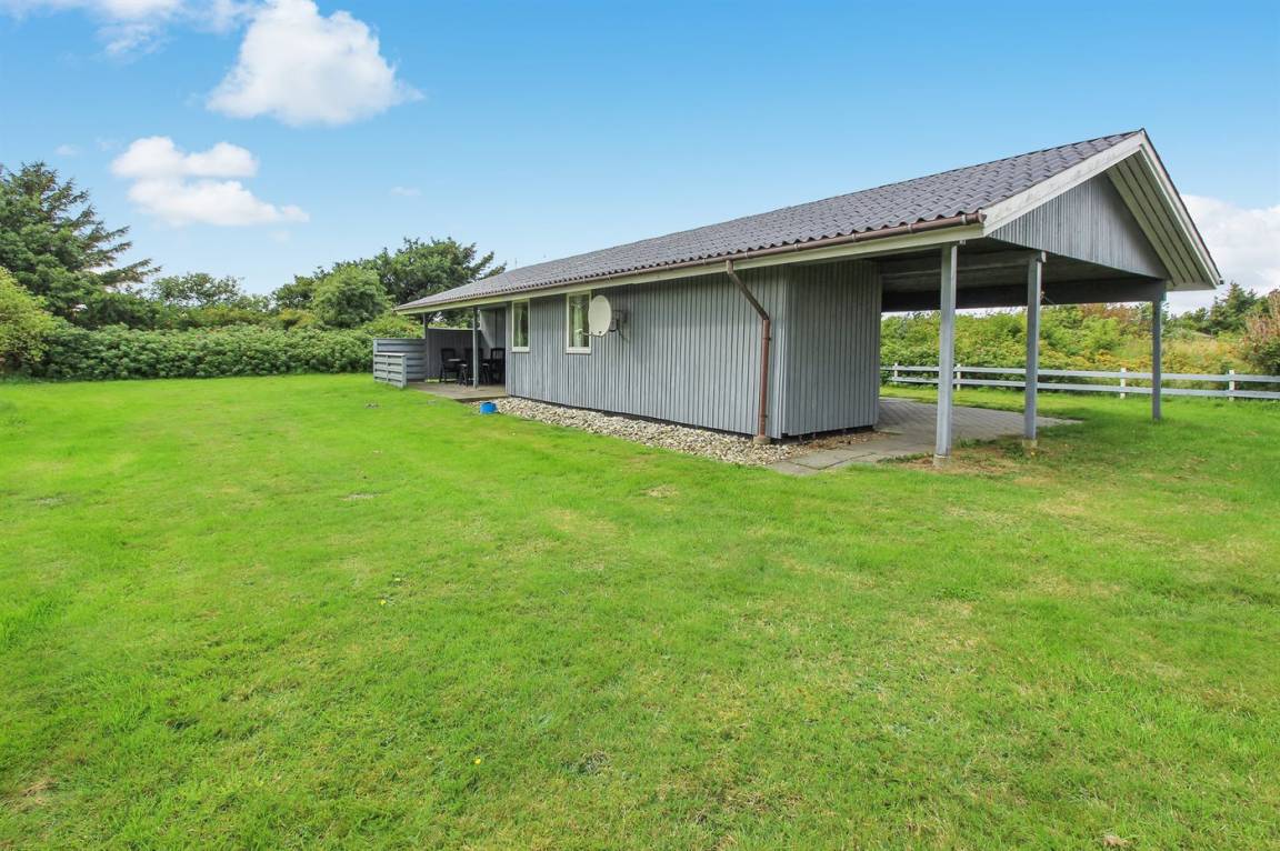 DraußenDie Ferienunterkunft liegt auf einem 4600 m² großen Naturgrundstück. Die Entfernung zum Meer beträgt 1300 m. Die Entfernung zum Fjord beträgt 700 m. Die nächste Einkaufsmöglichkeit liegt 200 m entfernt. Außerdem gibt es 20 m² überdachte Terrasse. Geräteraum. Sandkasten. Es steht ein Carport zur Verfügung. Parkplatz auf dem Grundstück.