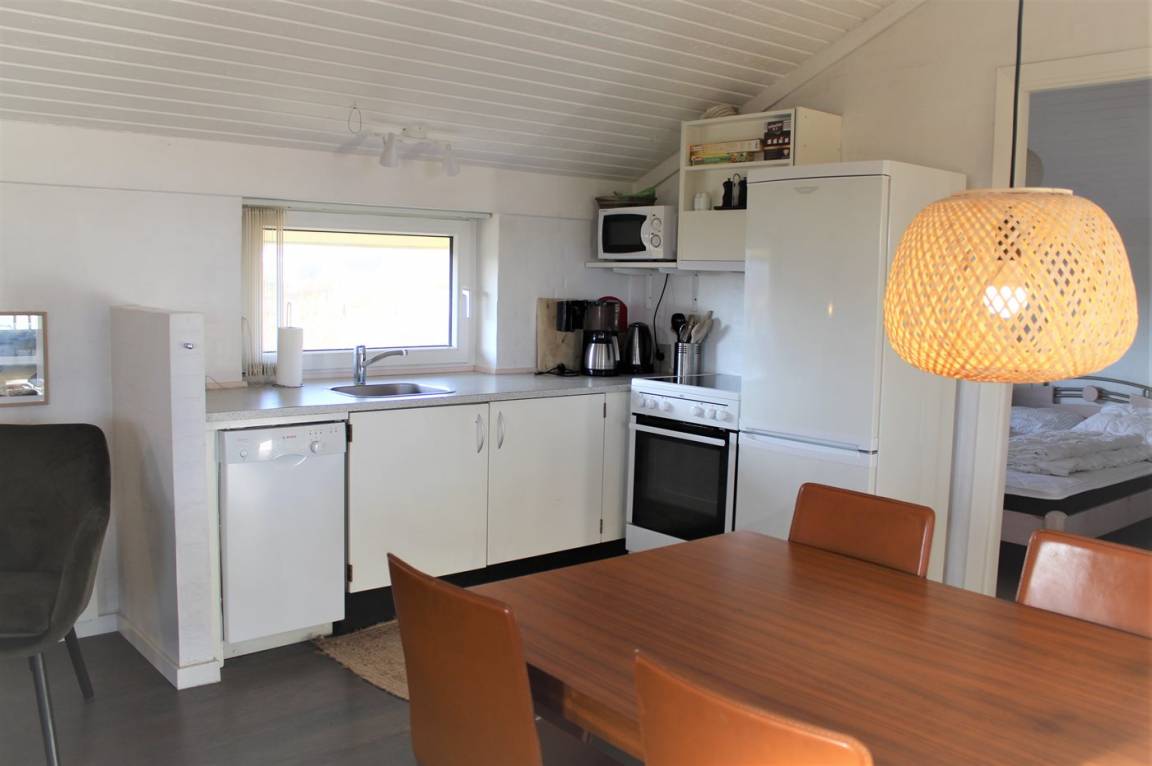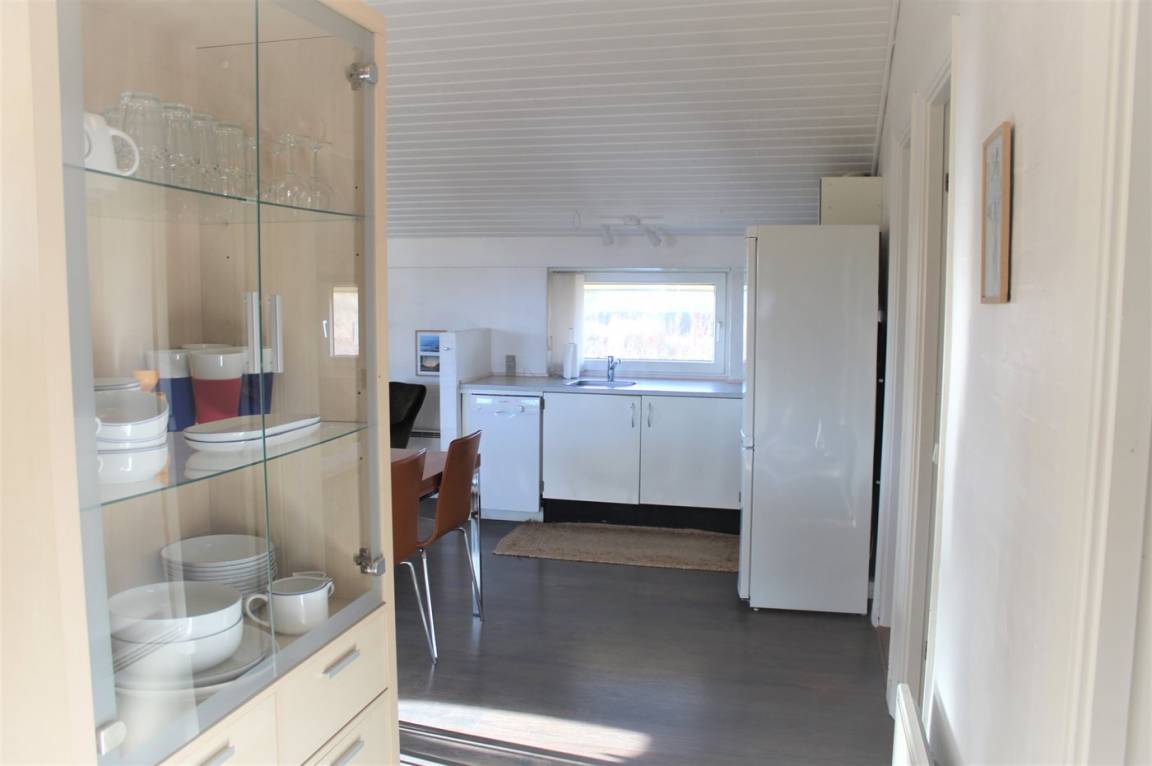 DraußenDie Ferienunterkunft liegt auf einem 1450 m² großen Naturgrundstück. Die Entfernung zum Meer beträgt 475 m. Die Entfernung zum Fjord beträgt 1250 m. Die nächste Einkaufsmöglichkeit liegt 800 m entfernt. Es steht ein 30 m² Terrassenareal zur Verfügung. Außerdem gibt es 15 m² überdachte Terrasse. Parkplatz auf dem Grundstück.