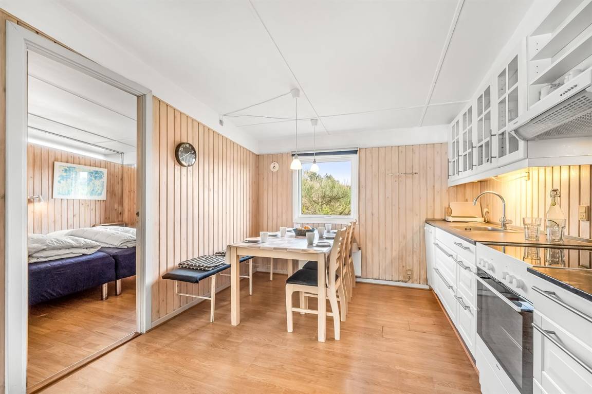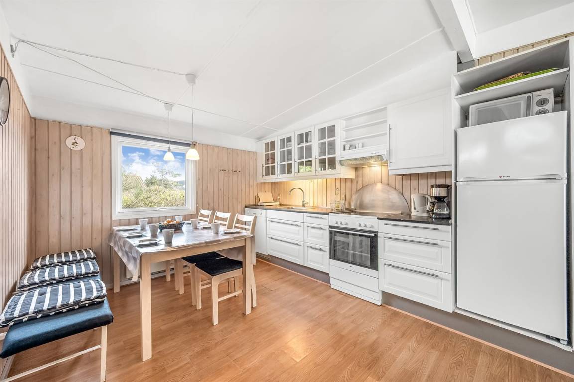„The vacation at the holiday home: Oplevede sommerhuset beskidt ved ankomst. Flere mangler - bl. a. manglede der en nøgle til toilet døren. Opvaskemaskinens kurv var i stykker, så bestikket hele tiden røg igennem. Der manglede der et hjul på selve stativet i bunden, så det var svært at køre den frem og tilbage - samtidig faldt det yderste hjul af flere gange. I køkkenet syntes jeg der var nogle mangler bl. a. var der ikke piskere til el håndmixer, der var ikke nogle ordentlige køkkenknive, ingen hvidløgspresser mm. Tænker køkkenet kunne trænge til en ordentlig gennemgang. Der var nogle køkkenredskaber der var rustne og nogle var beskidte da vi ankom. Terrassen er noget gammel og havde en oplevelse af, at man kan komme til at træde igennem.“