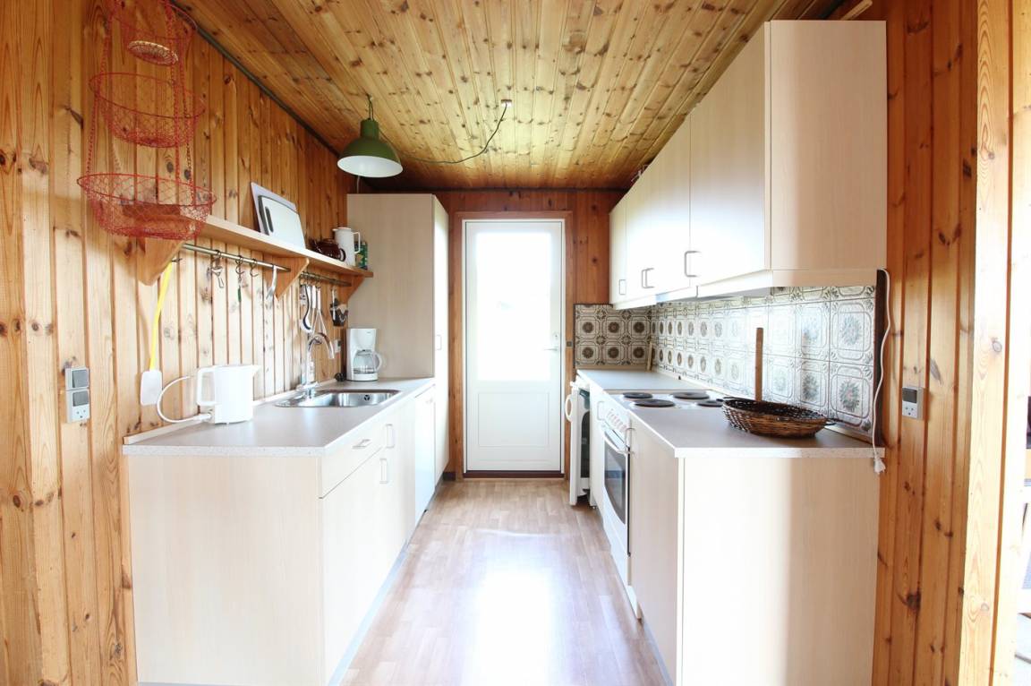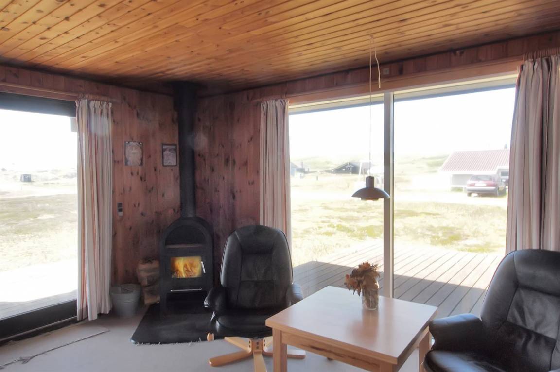 DraußenDie Ferienunterkunft liegt auf einem 1204 m² großen Naturgrundstück. Die Entfernung zum Meer beträgt 400 m. Die Entfernung zum Fjord beträgt 700 m. Die nächste Einkaufsmöglichkeit liegt 1500 m entfernt. Es steht ein 31 m² Terrassenareal zur Verfügung. Außerdem gibt es 15 m² überdachte Terrasse. Geräteraum.