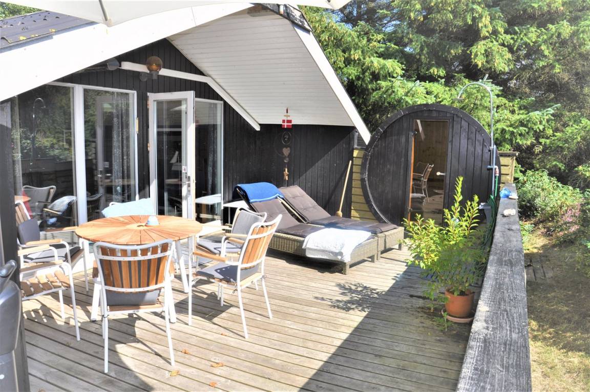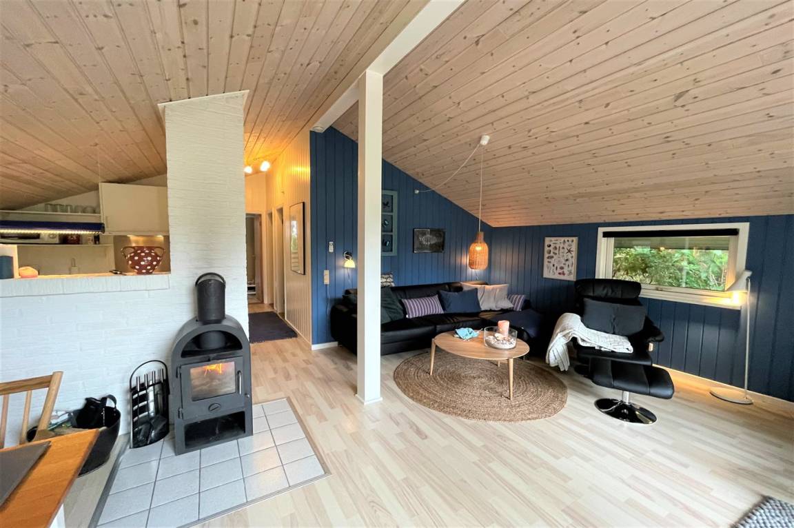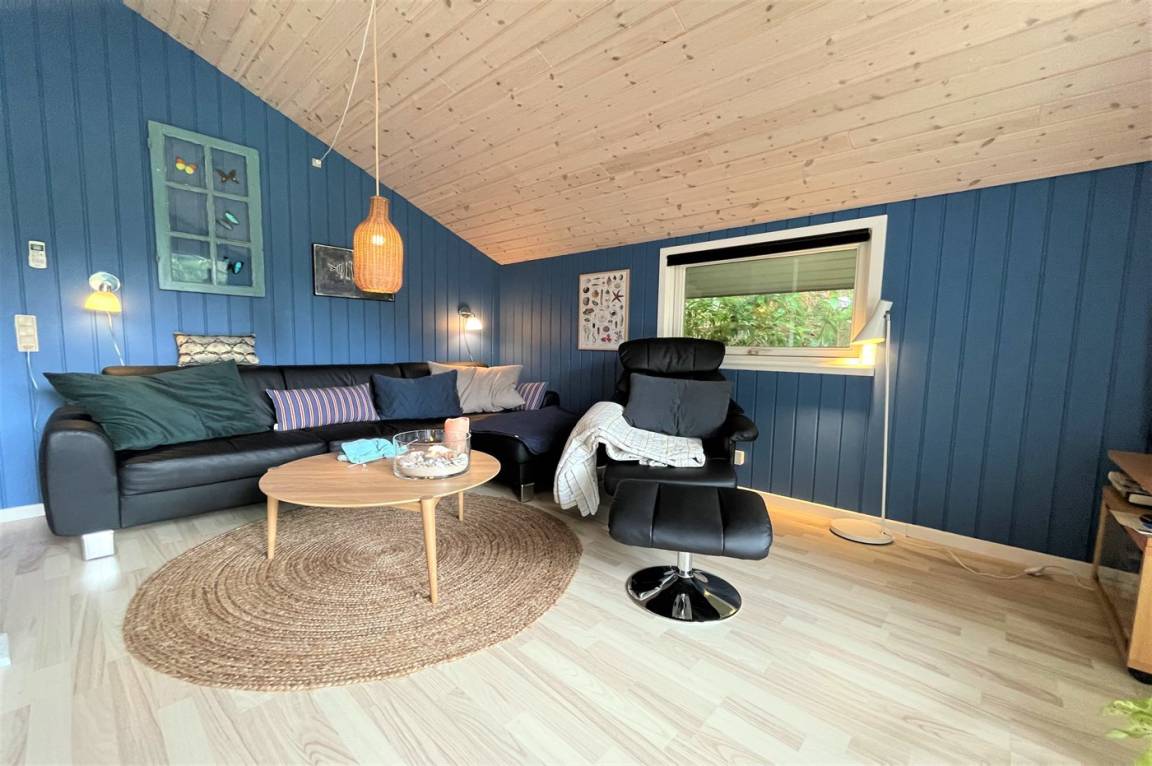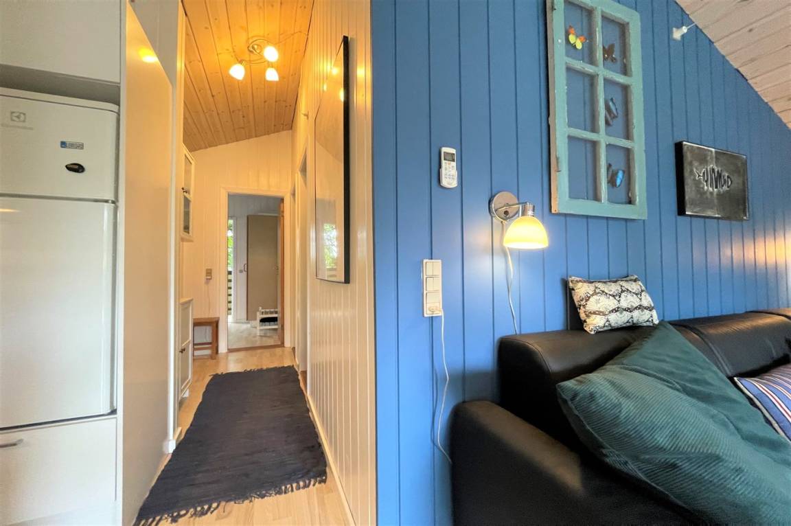 DraußenDie Ferienunterkunft liegt auf einem 1211 m² großen Naturgrundstück. Die Entfernung zum Meer beträgt 1100 m. Die Entfernung zum Fjord beträgt 575 m. Die nächste Einkaufsmöglichkeit liegt 300 m entfernt. Es steht ein 30 m² Terrassenareal zur Verfügung. Außerdem gibt es 12 m² überdachte Terrasse. Sandkasten. Außensauna. Parkplatz auf dem Grundstück.