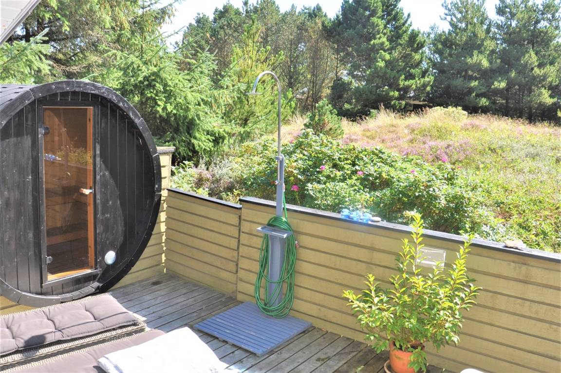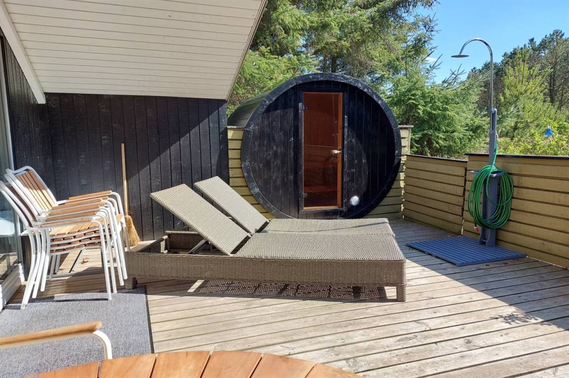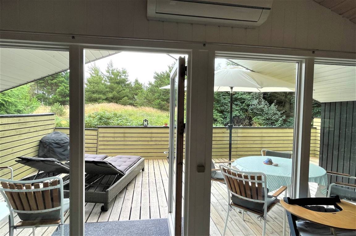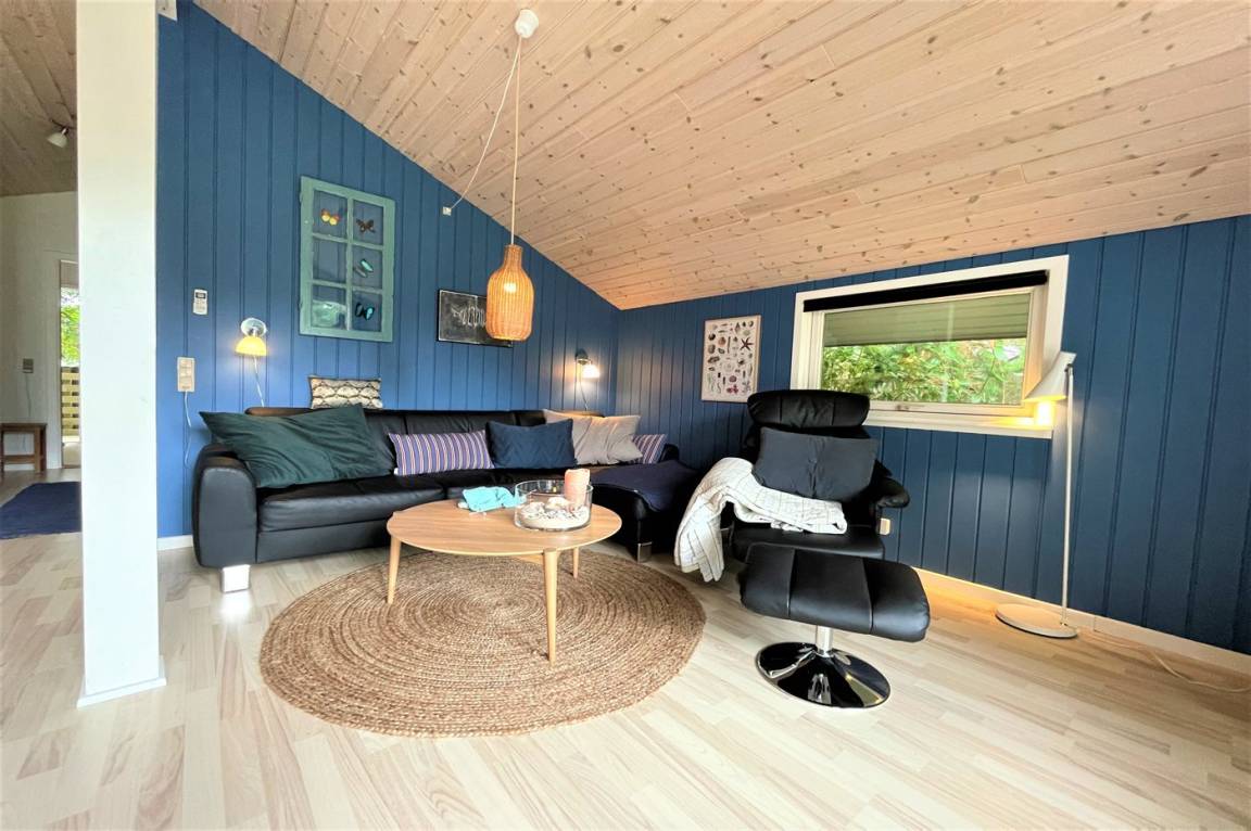 DraußenDie Ferienunterkunft liegt auf einem 1211 m² großen Naturgrundstück. Die Entfernung zum Meer beträgt 1100 m. Die Entfernung zum Fjord beträgt 575 m. Die nächste Einkaufsmöglichkeit liegt 300 m entfernt. Es steht ein 30 m² Terrassenareal zur Verfügung. Außerdem gibt es 12 m² überdachte Terrasse. Sandkasten. Außensauna. Parkplatz auf dem Grundstück.