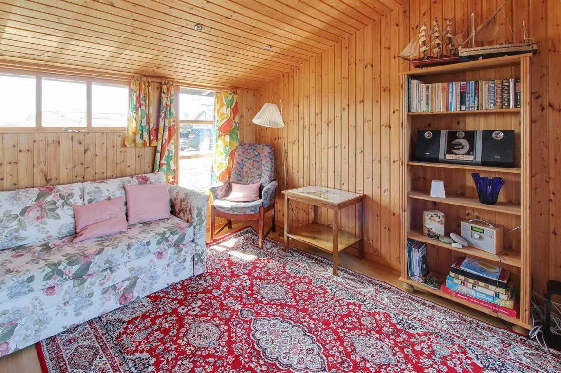DraußenDie Ferienunterkunft liegt auf einem 1417 m² großen Naturgrundstück. Die Entfernung zum Meer beträgt 380 m. Die Entfernung zum Fjord beträgt 1350 m. Die nächste Einkaufsmöglichkeit liegt 950 m entfernt. Es steht ein 30 m² Terrassenareal zur Verfügung. Schaukel. Sandkasten. Parkplatz auf dem Grundstück.