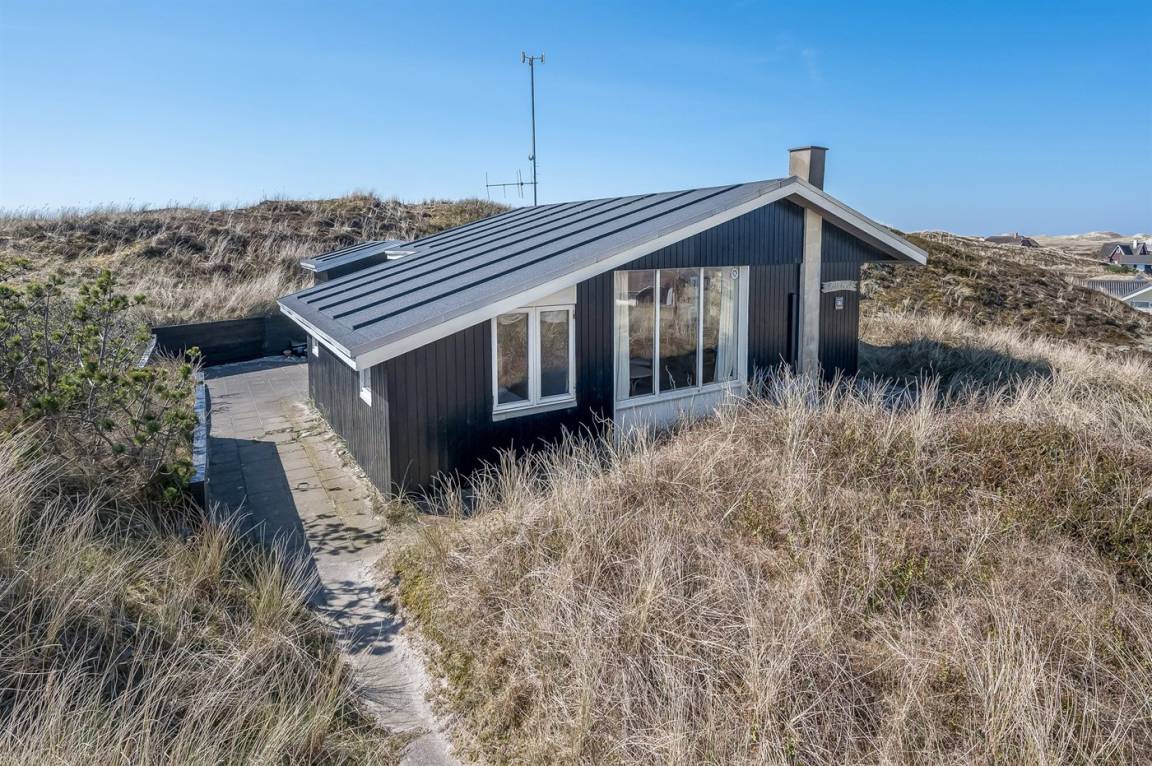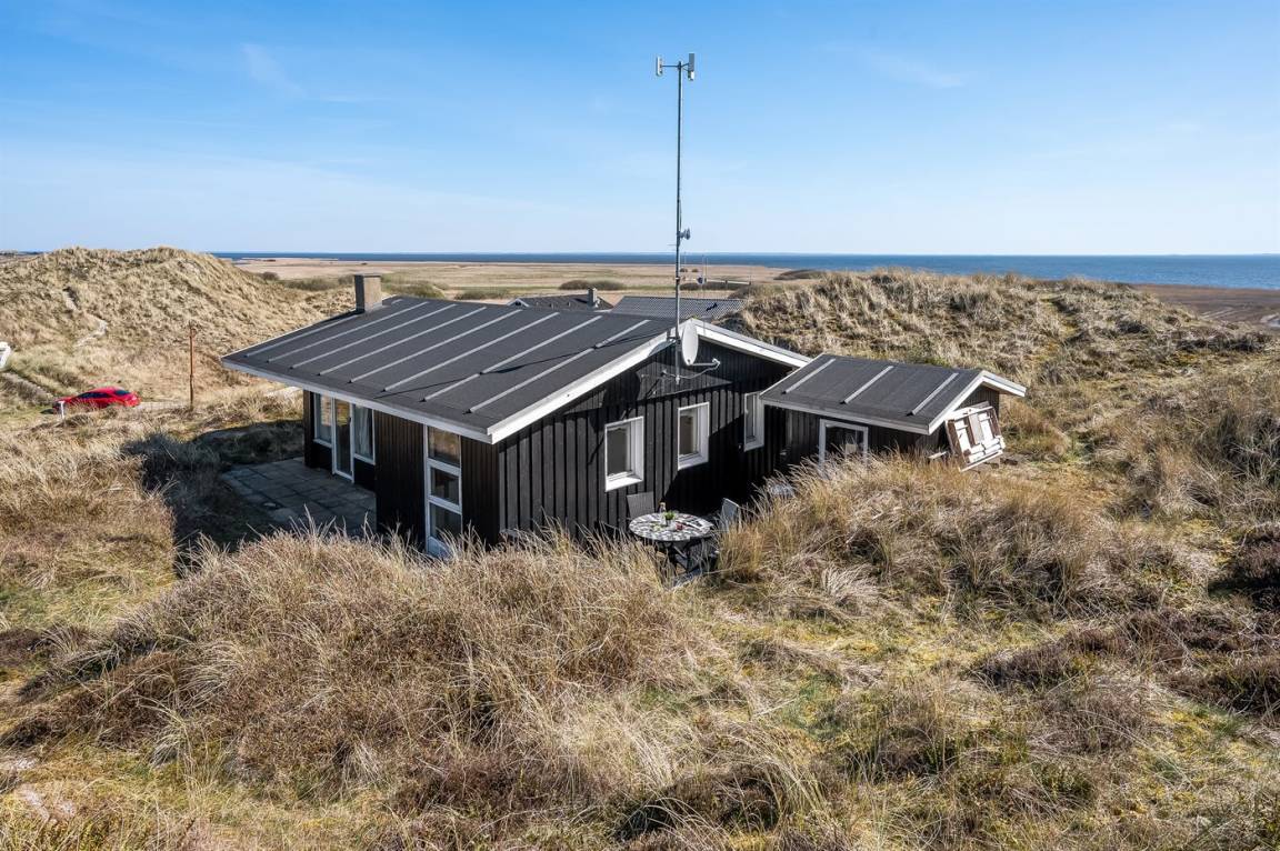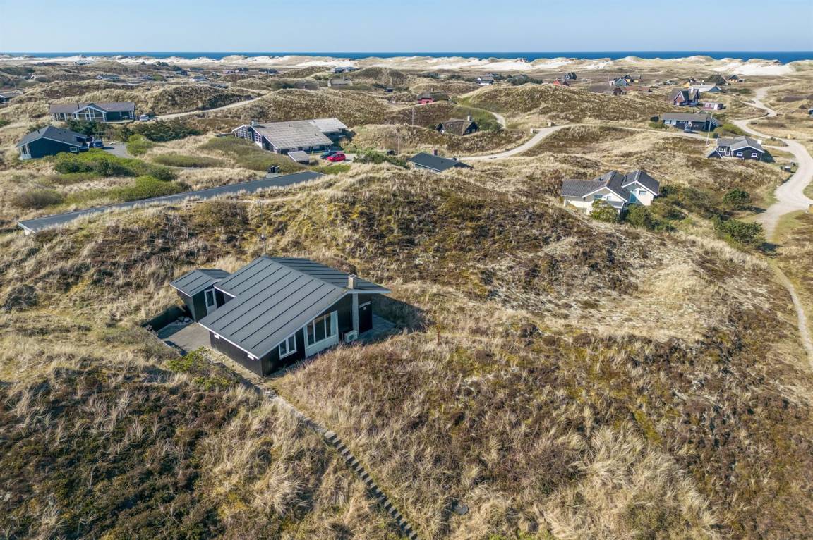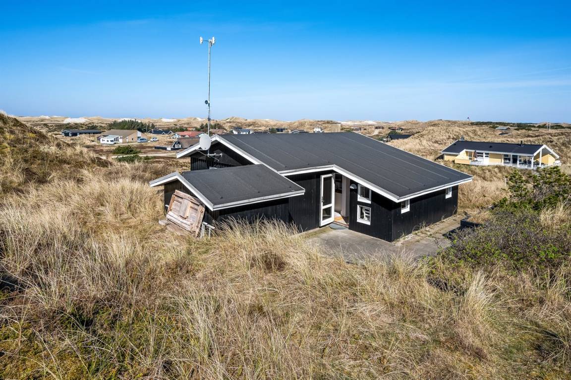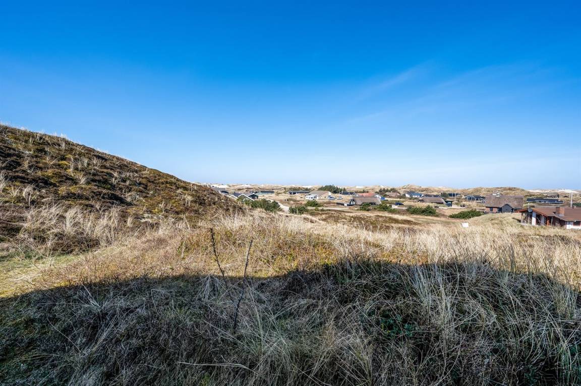 Schönes Ferienhaus auf einem schönen, leicht hügeligen Dünengrundstück - hoch gelegen. Aussicht über den Fjord sowohl vom Haus als auch vom Grundstück. Vom höchsten Punkt des Grundstückes können Sie das Meer ahnen. Zum Haus gehört ein offenes, ungestörtes Terrassenareal.