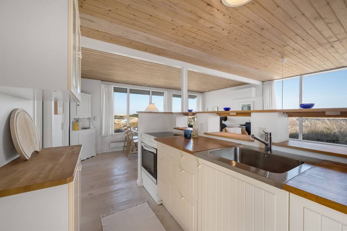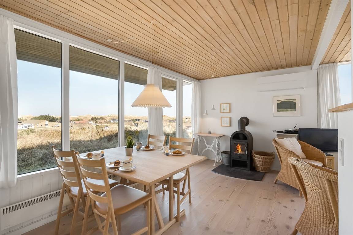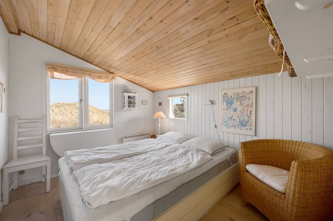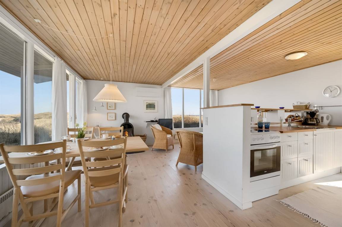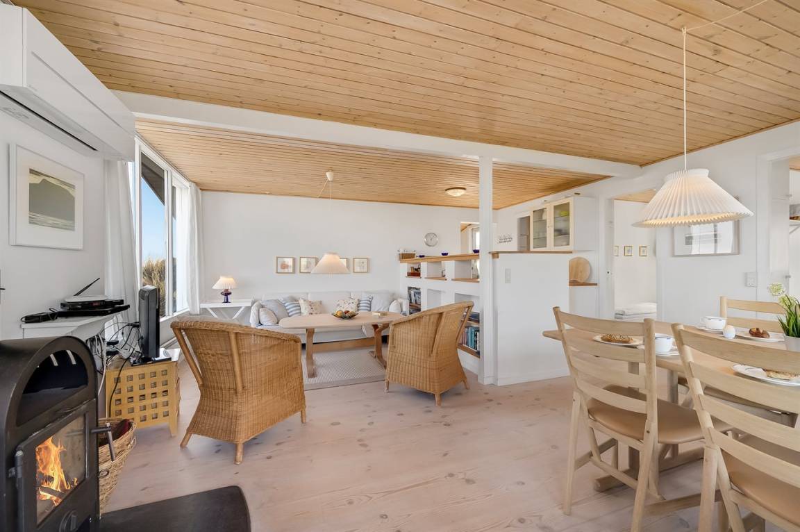 Schönes Ferienhaus auf einem schönen, leicht hügeligen Dünengrundstück - hoch gelegen. Aussicht über den Fjord sowohl vom Haus als auch vom Grundstück. Vom höchsten Punkt des Grundstückes können Sie das Meer ahnen. Zum Haus gehört ein offenes, ungestörtes Terrassenareal.