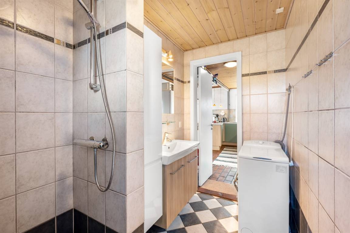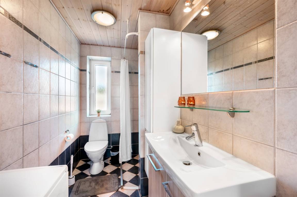 DraußenDie Ferienunterkunft liegt auf einem 4305 m² großen Naturgrundstück. Die Entfernung zum Meer beträgt 650 m. Die Entfernung zum Fjord beträgt 450 m. Die nächste Einkaufsmöglichkeit liegt 3000 m entfernt. Es steht ein 10 m² Terrassenareal zur Verfügung. Geräteraum. Parkplatz auf dem Grundstück.