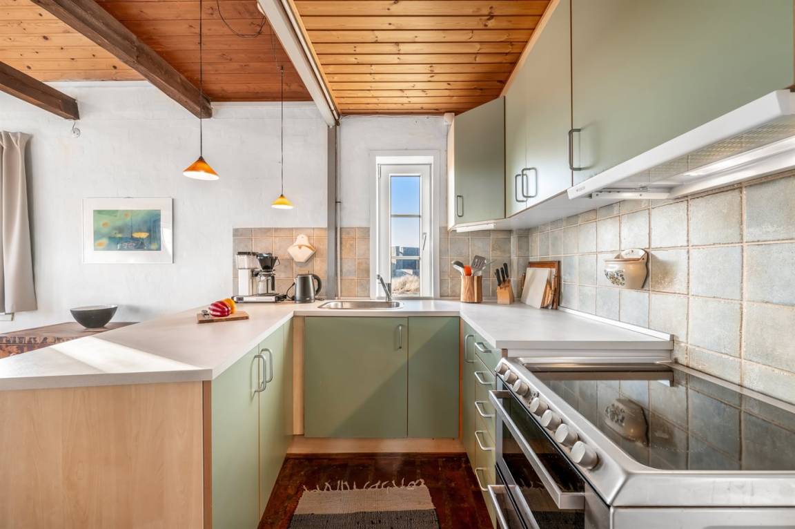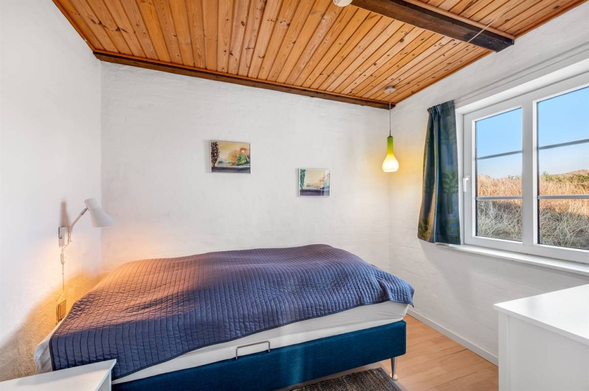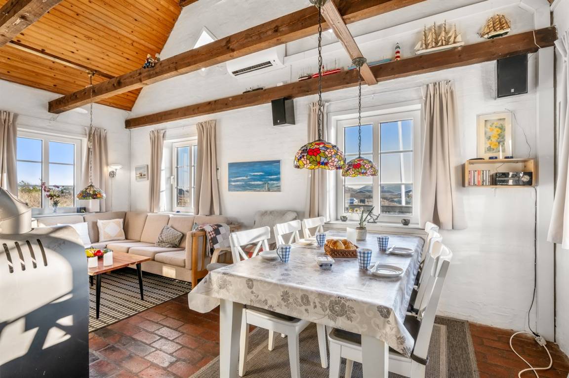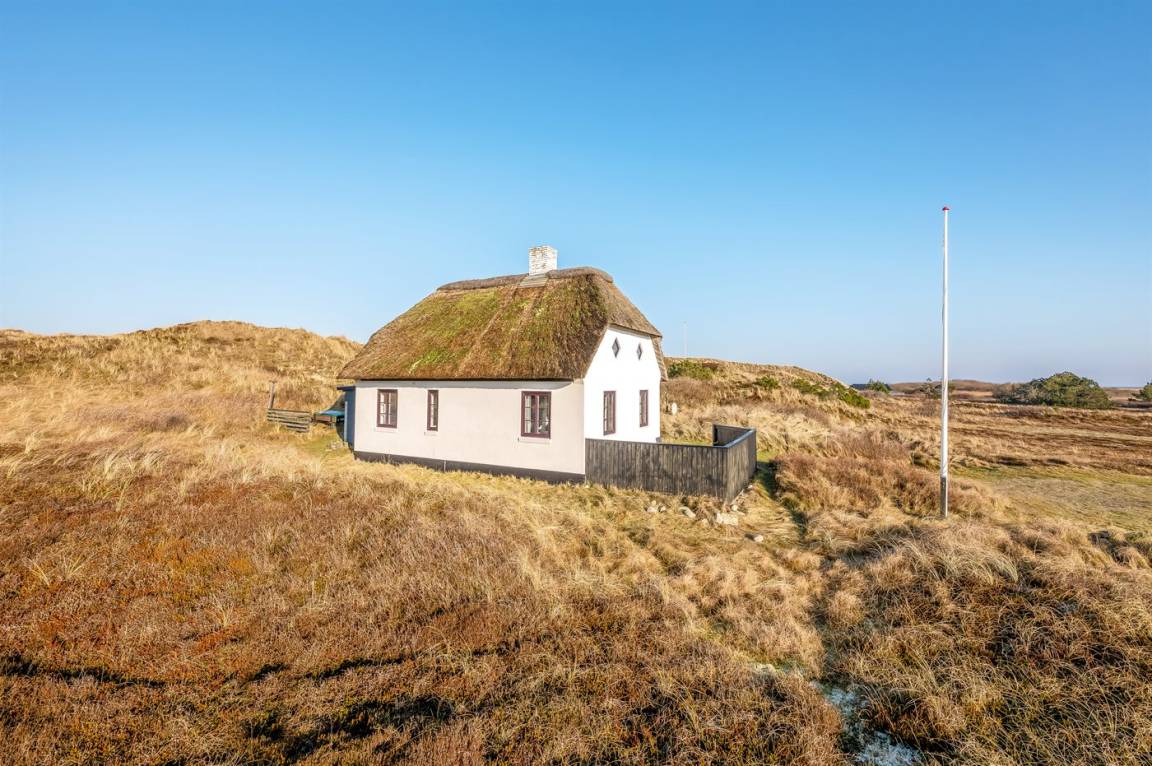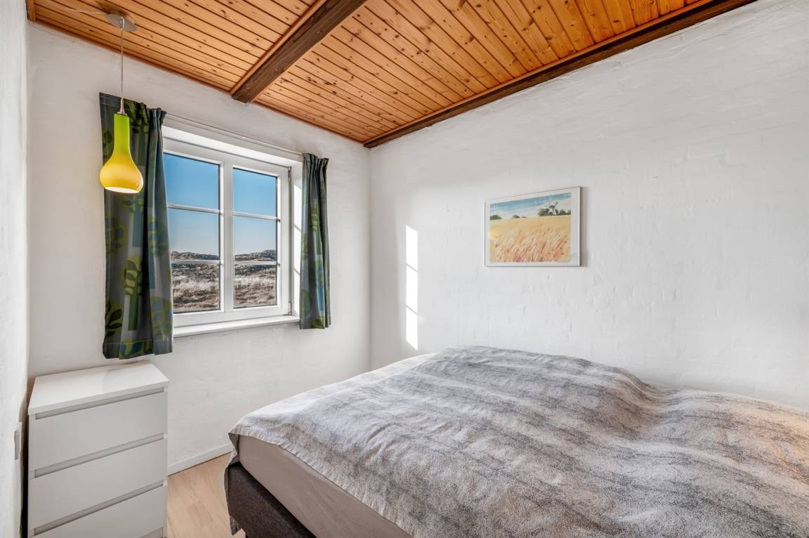 Schönes Ferienhaus aus Stein und mit Reetdach auf einem kombinierten Natur-/Dünengrundstück gelegen. Fjordblick vom Haus und Grundstück. Schrägende Holzdecken, gestrichene Steinwände. Überall Steinböden, jedoch Holzböden im Obergeschoss. Ein nettes Ferienhaus in ruhiger Umgebung.