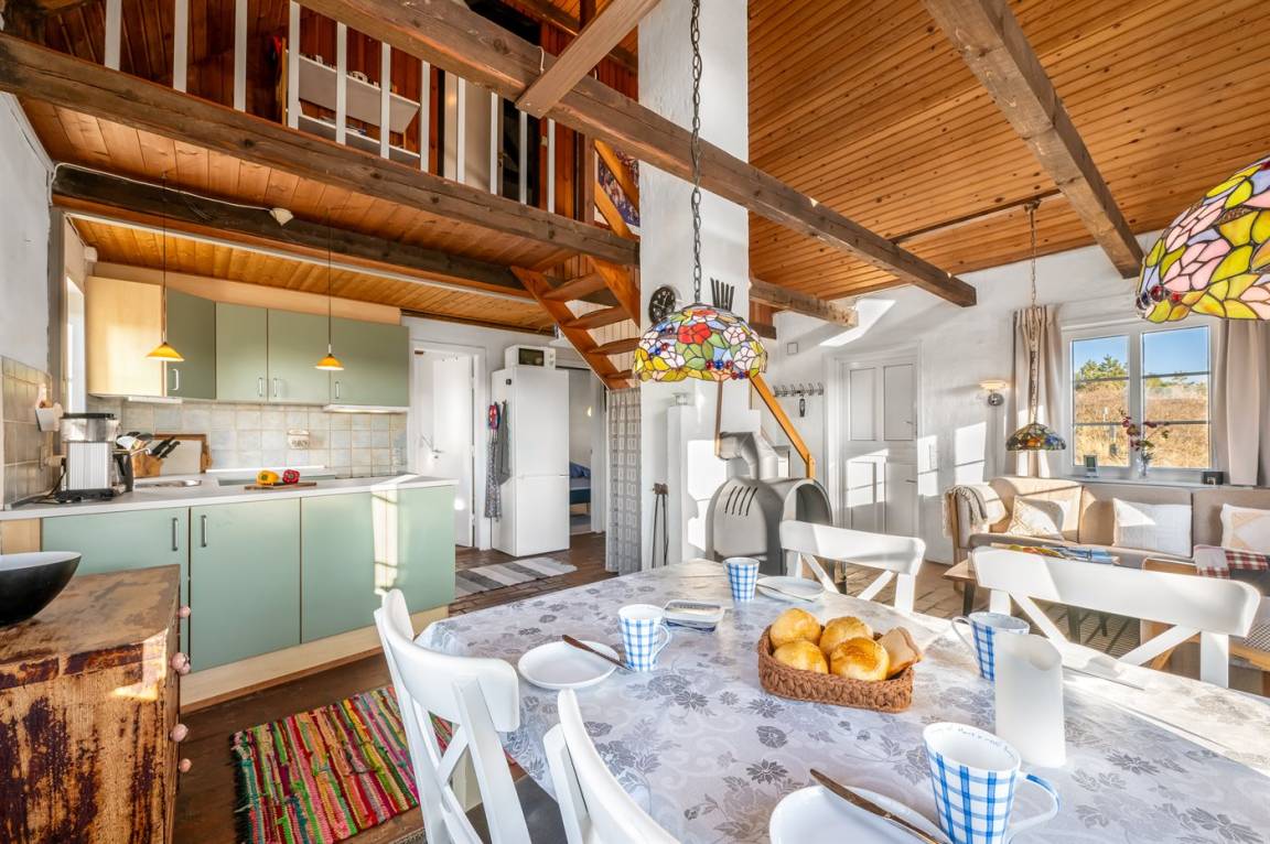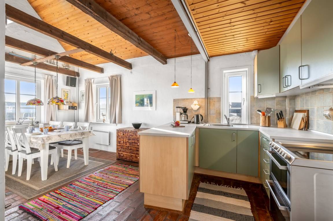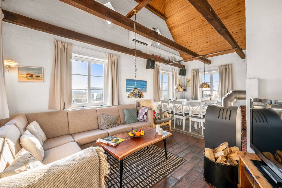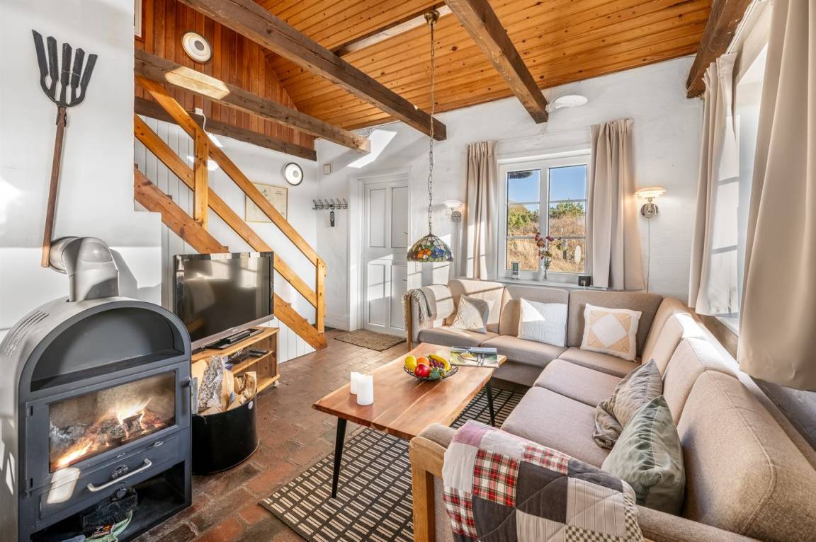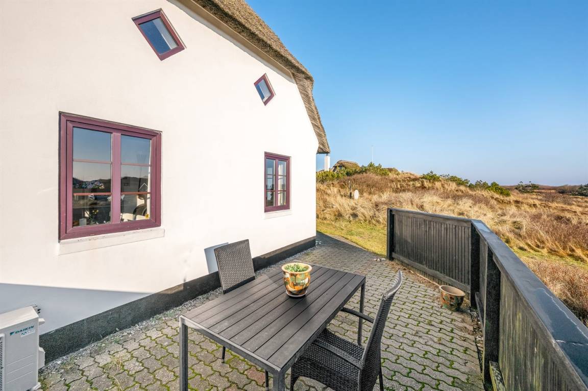 Schönes Ferienhaus aus Stein und mit Reetdach auf einem kombinierten Natur-/Dünengrundstück gelegen. Fjordblick vom Haus und Grundstück. Schrägende Holzdecken, gestrichene Steinwände. Überall Steinböden, jedoch Holzböden im Obergeschoss. Ein nettes Ferienhaus in ruhiger Umgebung.