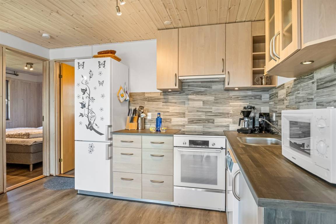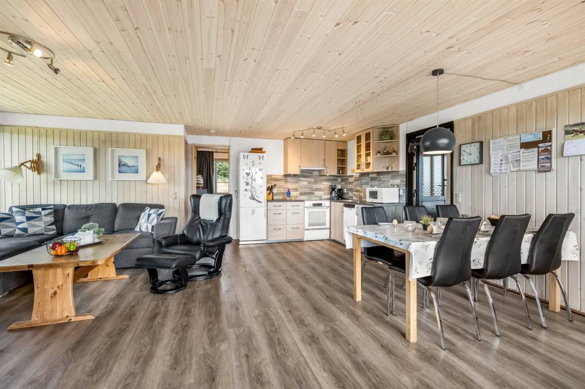 DraußenDie Ferienunterkunft liegt auf einem 1200 m² großen Naturgrundstück. Die Entfernung zum Meer beträgt 400 m. Die Entfernung zum Fjord beträgt 520 m. Die nächste Einkaufsmöglichkeit liegt 2000 m entfernt. Es steht ein 74 m² Terrassenareal zur Verfügung. Es stehen 44 m² offeneTerrasse und 20 m² überdachte Terrasse zur Verfügung. Davon sind insgesamt 32 m² geschlossen. Davon insgesamt 74 m² geschlossene Terrasse. Geräteraum. Sandkasten. Parkplatz auf dem Grundstück.