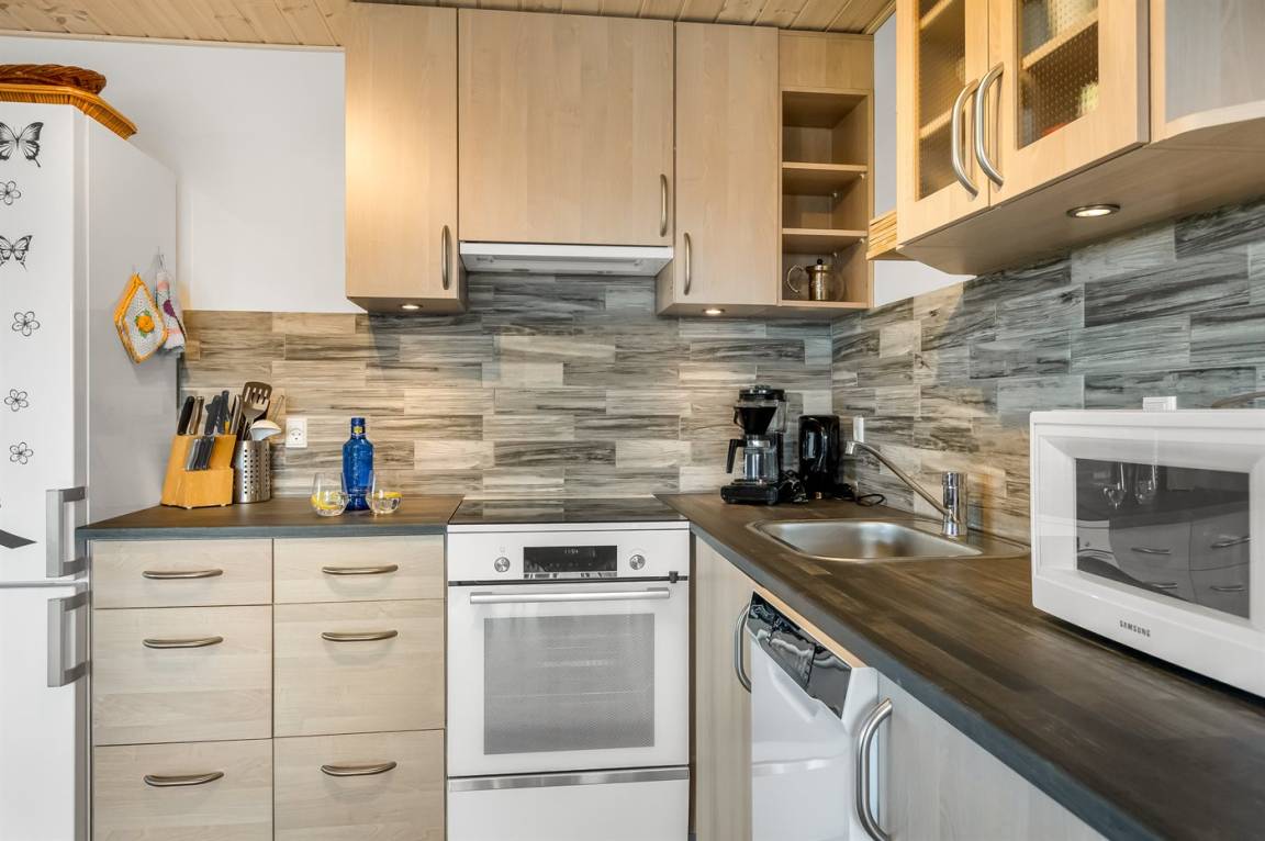 KücheDie Küche ist mit Kühlschrank ausgestattet. Außerdem gibt es 4 Induktions-Kochzonen, Umluftofen, Mikrowelle, Airfryer sowie Geschirrspüler.