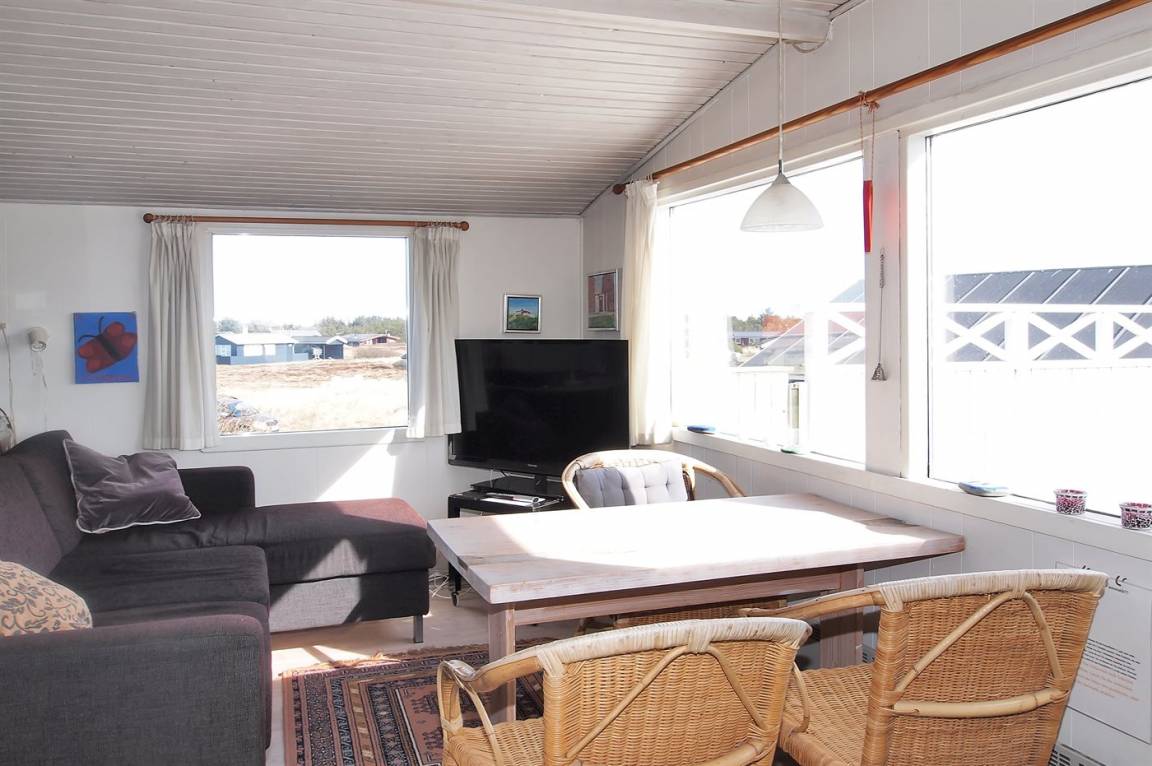 Ferienhaus aus Holz, 1948 gebaut, auf einem schönen, leicht hügeligen Dünengrundstück gelegen. Zum Haus gehören 2 offene Terrassen sowie ein Wintergarten. Helle Holzdecken und -wände. Teppichböden, jedoch PVC-Boden in der Küche. Kleines Badezimmer mit Duschnische. Küche mit u. a. Tiefkühlgerät und Mikrowelle. Wohnzimmer mit Kaminofen, DVD-Spieler, CD-Spieler und TV mit digitalem Satellitenanschluss. Ferner kostenlose Internetverbindung vorhanden (100/100 Mbit - Computer ist mitzubringen). Die Schlafplätze verteilen sich auf 1 Zimmer mit Doppelbett und 1 Zimmer mit Etagenbett.