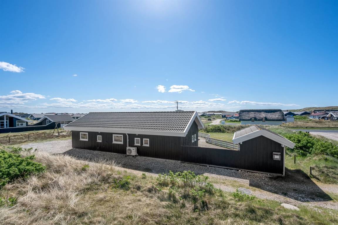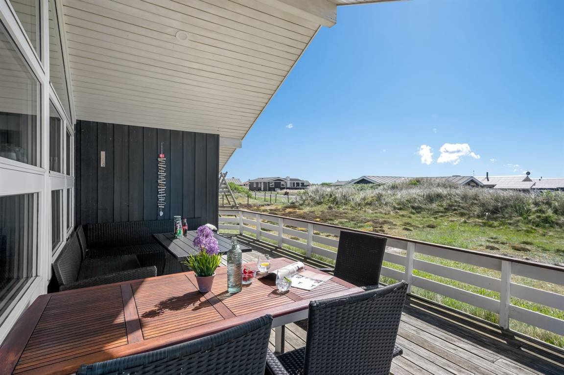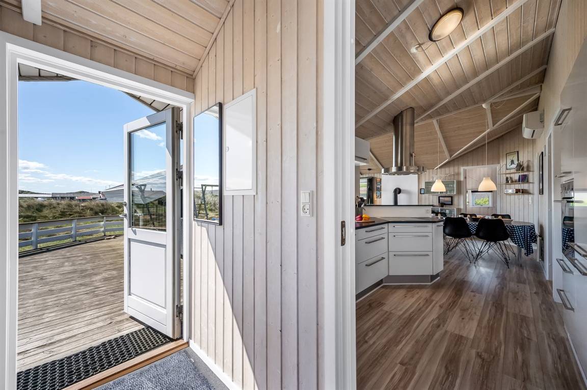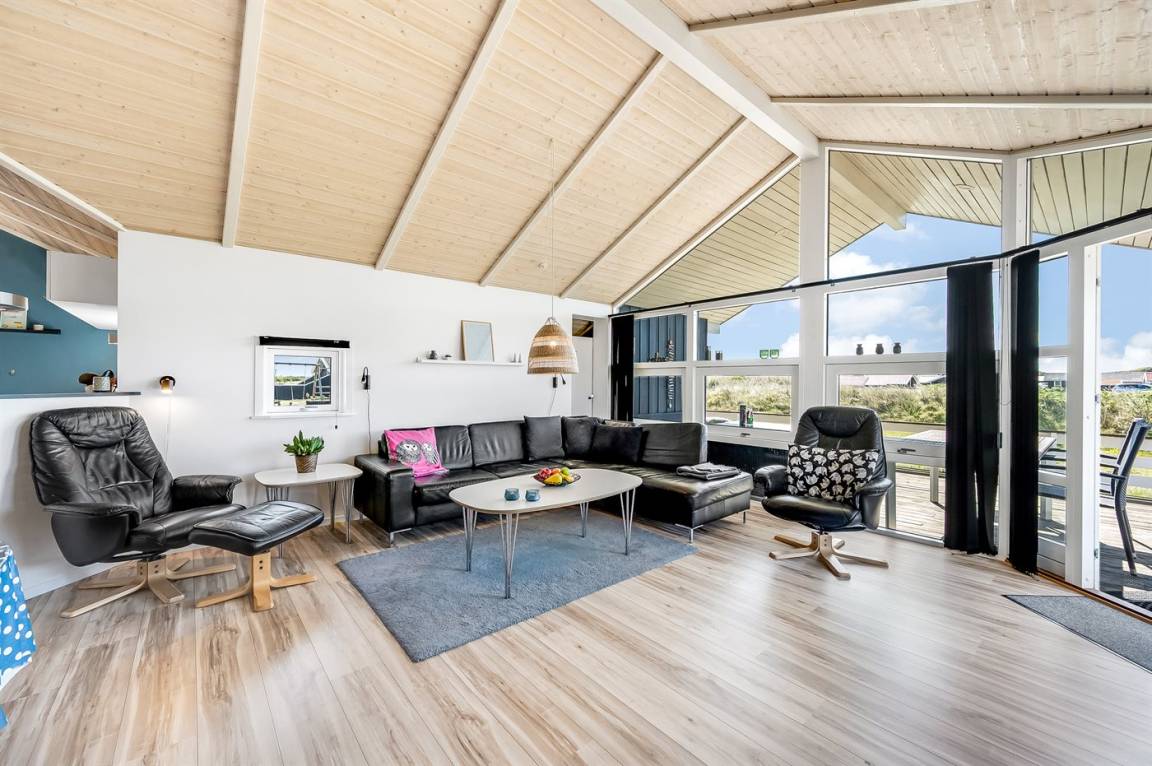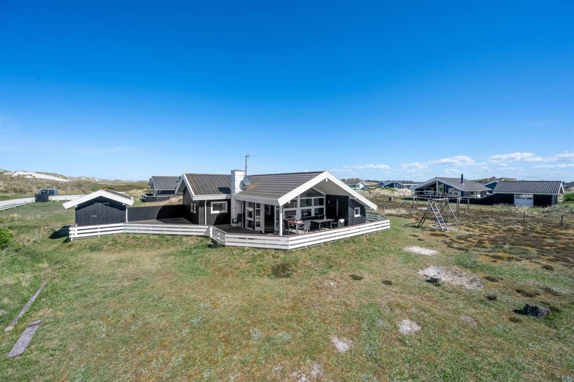 Prachtvolles Ferienhaus aus Holz mit Whirlpool und Sauna. Das Haus ist 2003 gebaut und auf einem Naturgrundstück nur 200 m von der Nordsee entfernt gelegen. Großes Terrassenareal, sowohl offenes als überdachtes, mit Gartenmöbeln. Holzböden mit Brücken, Teppichböden in den Zimmern, Klinkerboden im Flur. Tolles Badezimmer mit Whirlpool, Duschnische und Fußbodenheizung. Vom Badezimmer Zugang zur Sauna. Gästetoilette. Die moderne und gut ausgestattete Küche enthält u. a. Umluftofen, Mikrowelle, Geschirrspüler und Tiefkühlgerät. Geschmackvoll eingerichtetes Wohnzimmer mit Kaminofen, TV mit digitalem Satellitenanschluss, DVD-Spieler und Stereoanlage mit CD-Spieler. Die Schlafplätze verteilen sich auf 3 Zimmer, alle mit Doppelbett. Ferner stehen kostenlose ADSL-Internetverbindung (Computer ist mitzubringen), sowie Waschmaschine und Wäschetrockner zur Verfügung. Sandkasten und Schaukel auf dem Grundstück. Ein hübsches, helles und empfehlenswertes Ferienhaus mit Blick auf die Dünen.