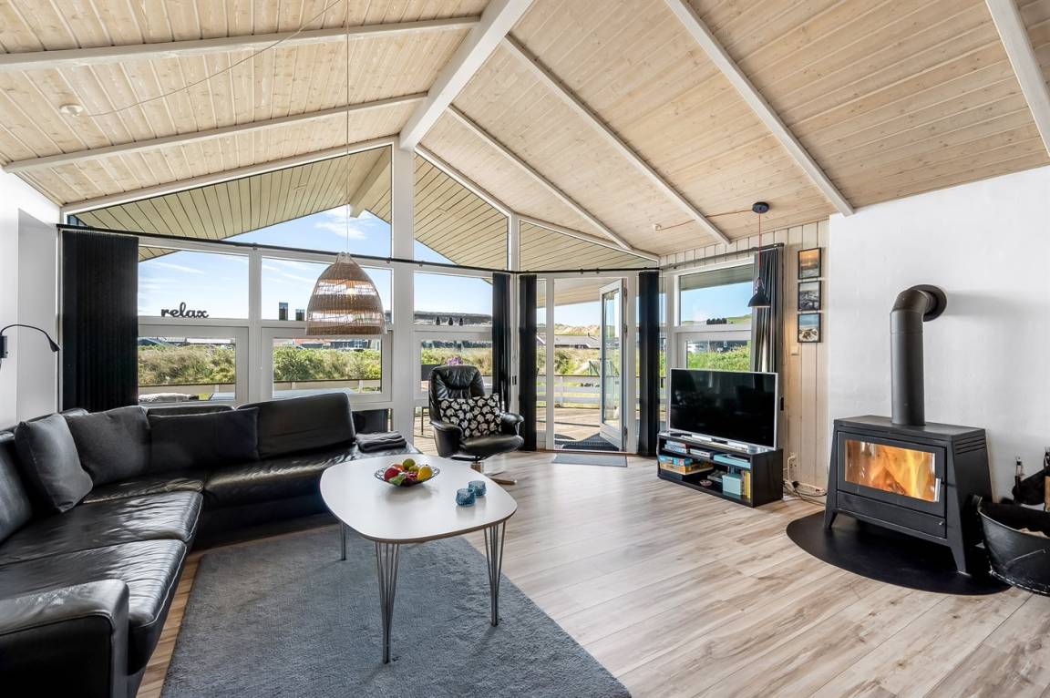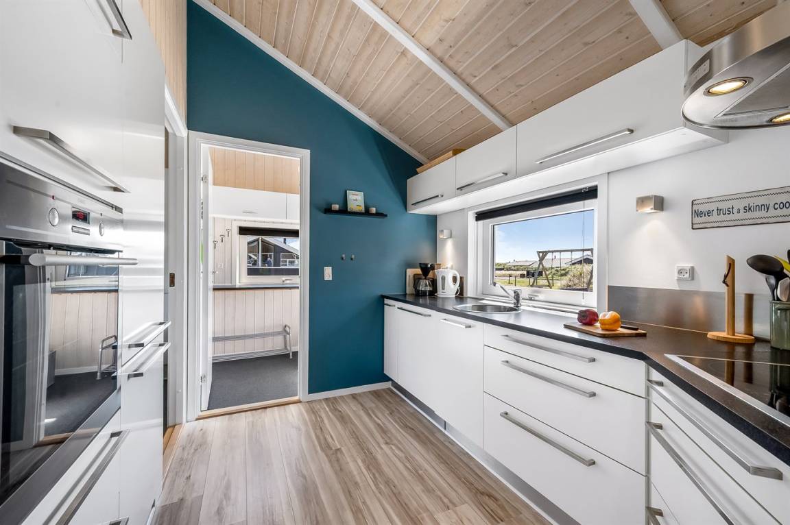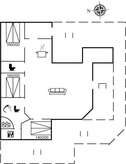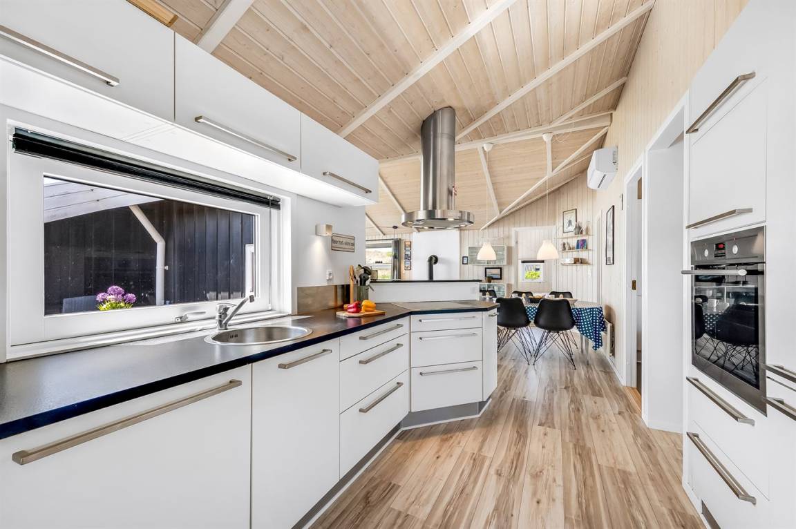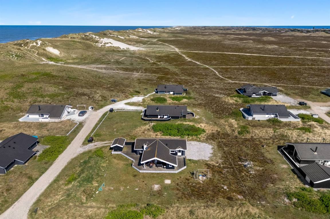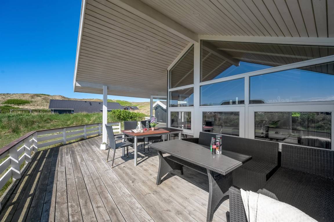 Prachtvolles Ferienhaus aus Holz mit Whirlpool und Sauna. Das Haus ist 2003 gebaut und auf einem Naturgrundstück nur 200 m von der Nordsee entfernt gelegen. Großes Terrassenareal, sowohl offenes als überdachtes, mit Gartenmöbeln. Holzböden mit Brücken, Teppichböden in den Zimmern, Klinkerboden im Flur. Tolles Badezimmer mit Whirlpool, Duschnische und Fußbodenheizung. Vom Badezimmer Zugang zur Sauna. Gästetoilette. Die moderne und gut ausgestattete Küche enthält u. a. Umluftofen, Mikrowelle, Geschirrspüler und Tiefkühlgerät. Geschmackvoll eingerichtetes Wohnzimmer mit Kaminofen, TV mit digitalem Satellitenanschluss, DVD-Spieler und Stereoanlage mit CD-Spieler. Die Schlafplätze verteilen sich auf 3 Zimmer, alle mit Doppelbett. Ferner stehen kostenlose ADSL-Internetverbindung (Computer ist mitzubringen), sowie Waschmaschine und Wäschetrockner zur Verfügung. Sandkasten und Schaukel auf dem Grundstück. Ein hübsches, helles und empfehlenswertes Ferienhaus mit Blick auf die Dünen.