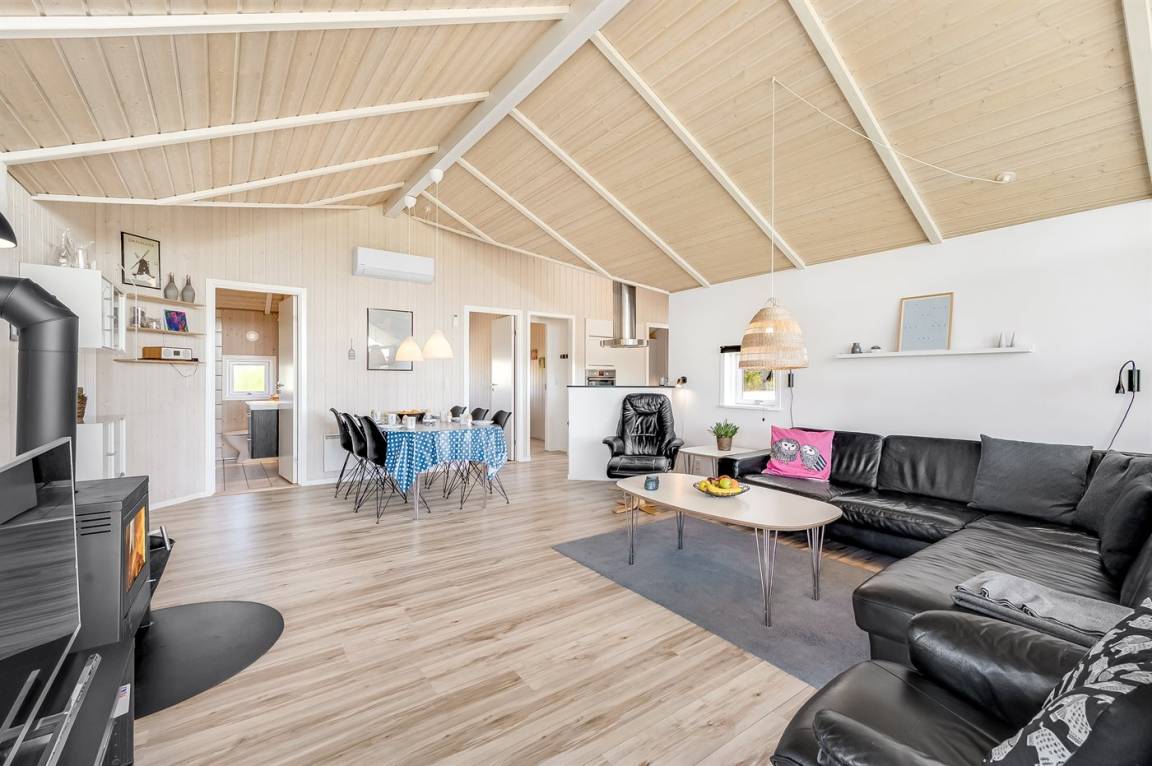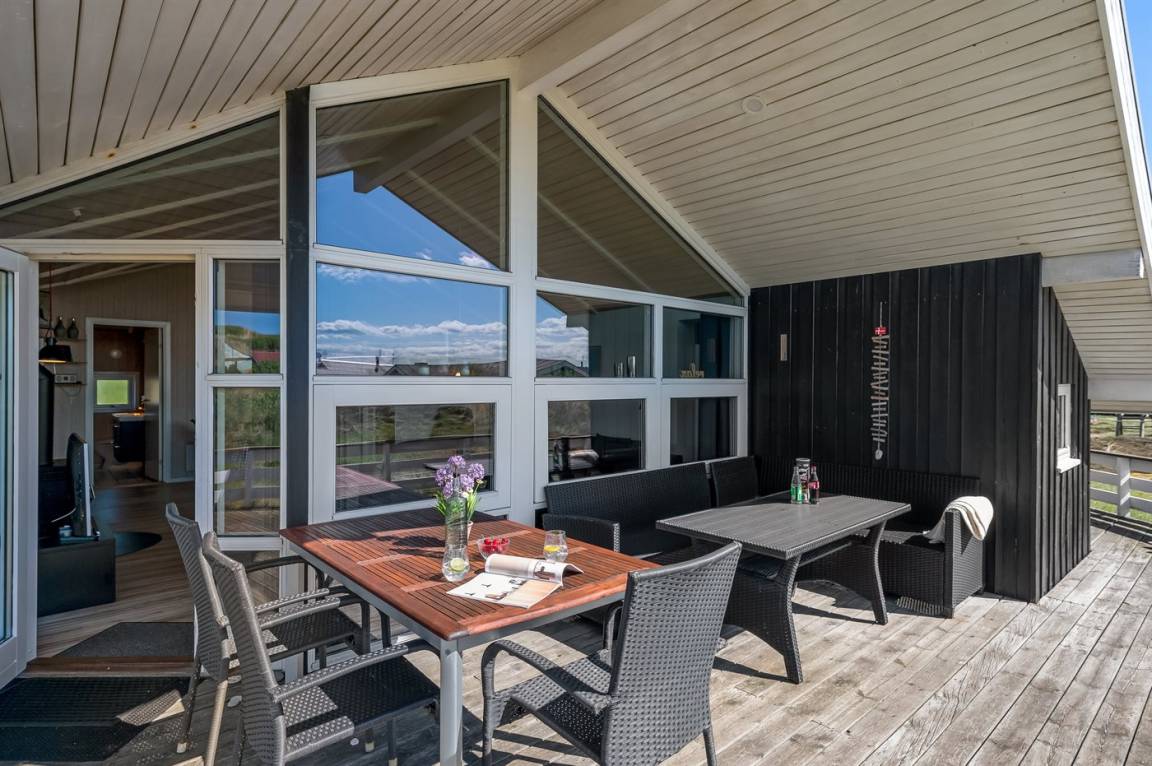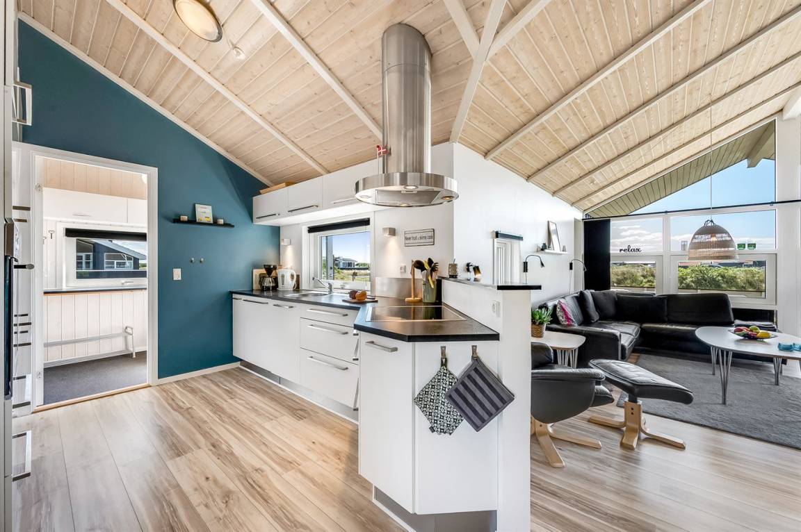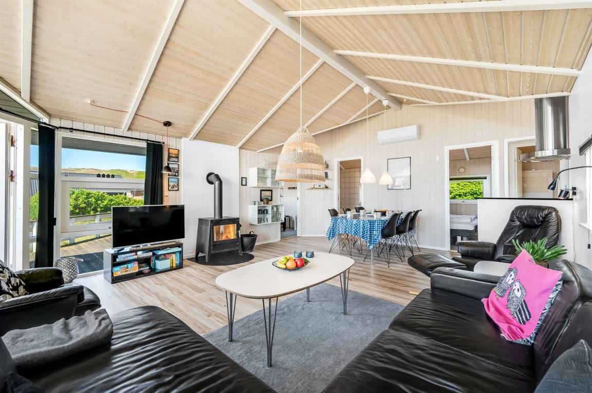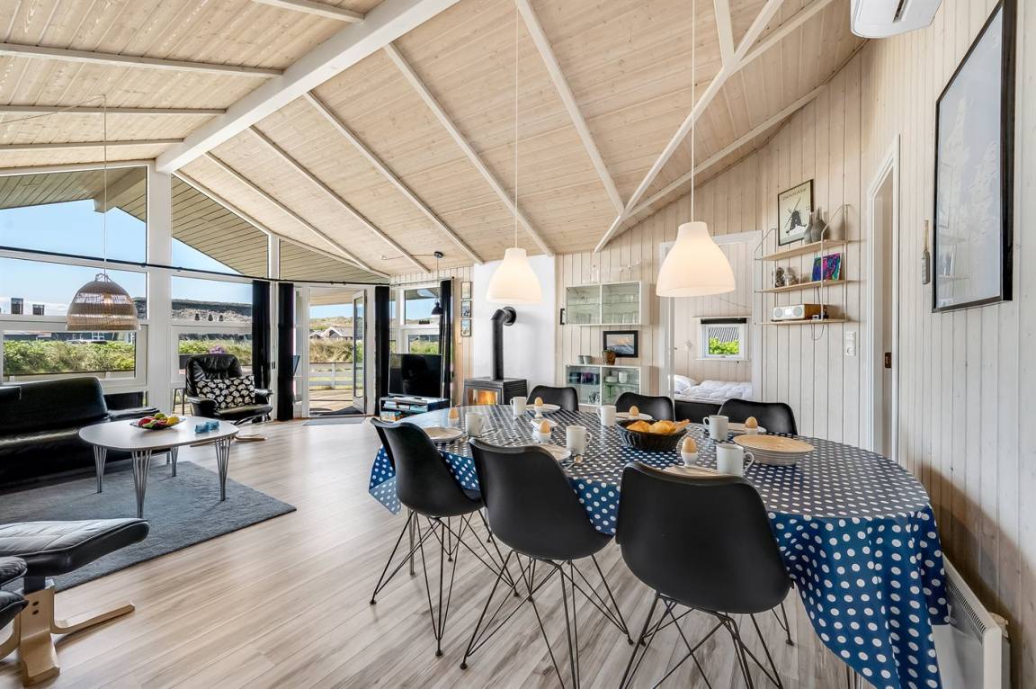 Prachtvolles Ferienhaus aus Holz mit Whirlpool und Sauna. Das Haus ist 2003 gebaut und auf einem Naturgrundstück nur 200 m von der Nordsee entfernt gelegen. Großes Terrassenareal, sowohl offenes als überdachtes, mit Gartenmöbeln. Holzböden mit Brücken, Teppichböden in den Zimmern, Klinkerboden im Flur. Tolles Badezimmer mit Whirlpool, Duschnische und Fußbodenheizung. Vom Badezimmer Zugang zur Sauna. Gästetoilette. Die moderne und gut ausgestattete Küche enthält u. a. Umluftofen, Mikrowelle, Geschirrspüler und Tiefkühlgerät. Geschmackvoll eingerichtetes Wohnzimmer mit Kaminofen, TV mit digitalem Satellitenanschluss, DVD-Spieler und Stereoanlage mit CD-Spieler. Die Schlafplätze verteilen sich auf 3 Zimmer, alle mit Doppelbett. Ferner stehen kostenlose ADSL-Internetverbindung (Computer ist mitzubringen), sowie Waschmaschine und Wäschetrockner zur Verfügung. Sandkasten und Schaukel auf dem Grundstück. Ein hübsches, helles und empfehlenswertes Ferienhaus mit Blick auf die Dünen.