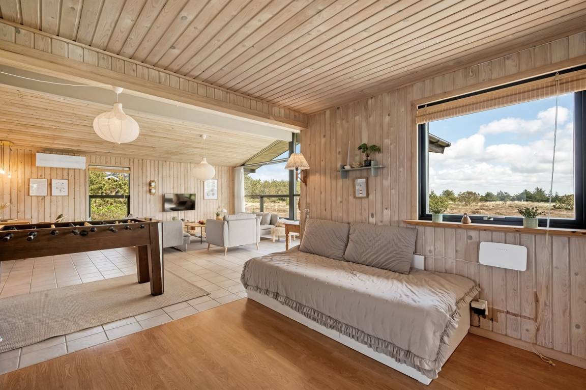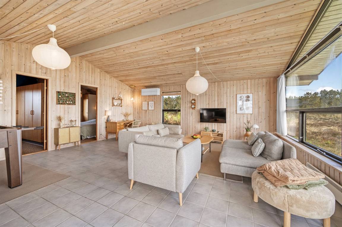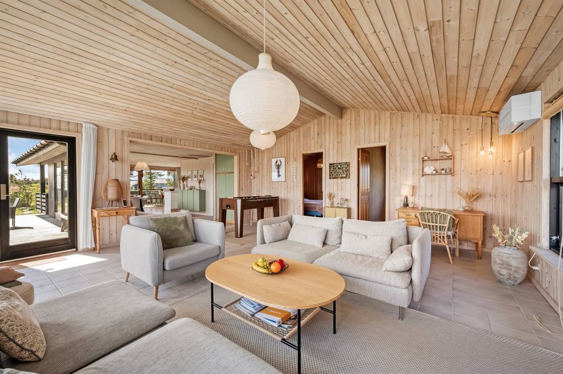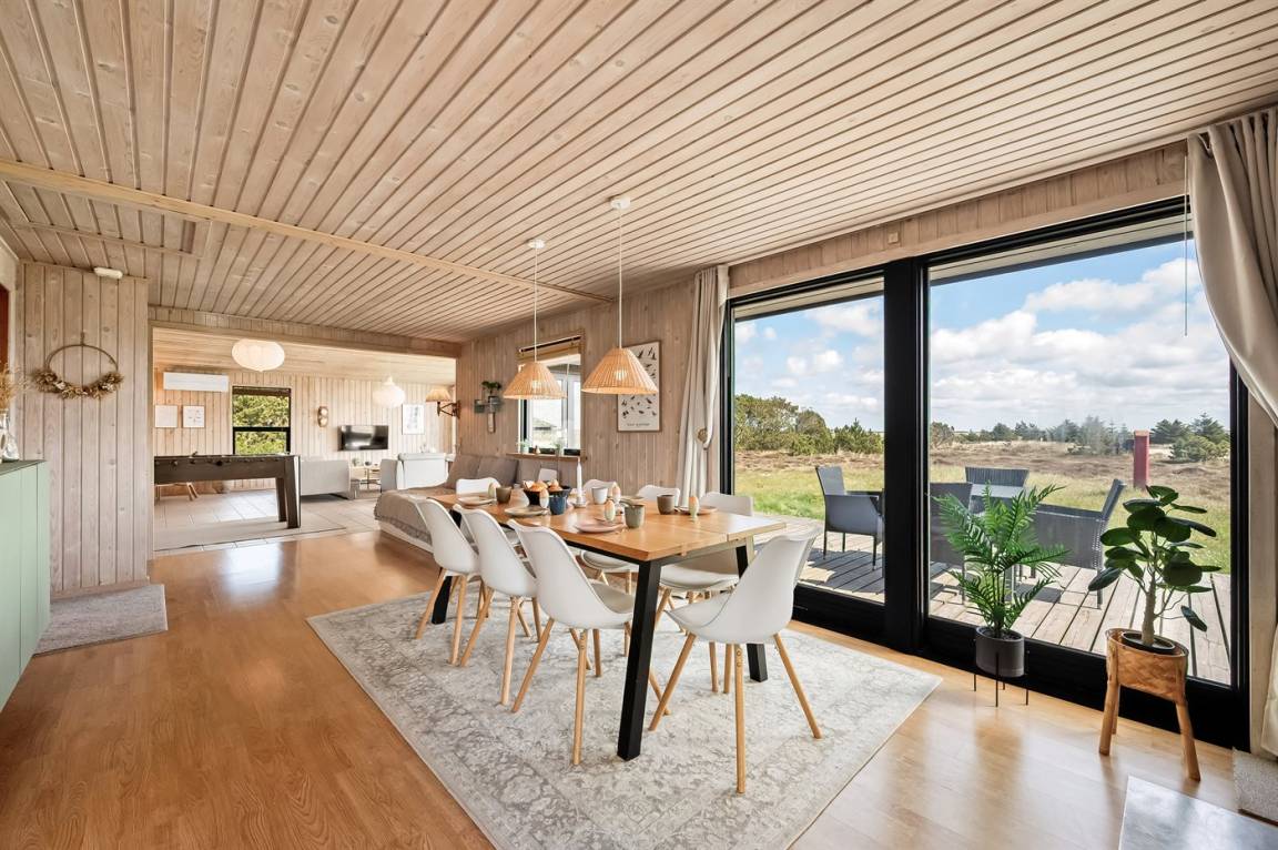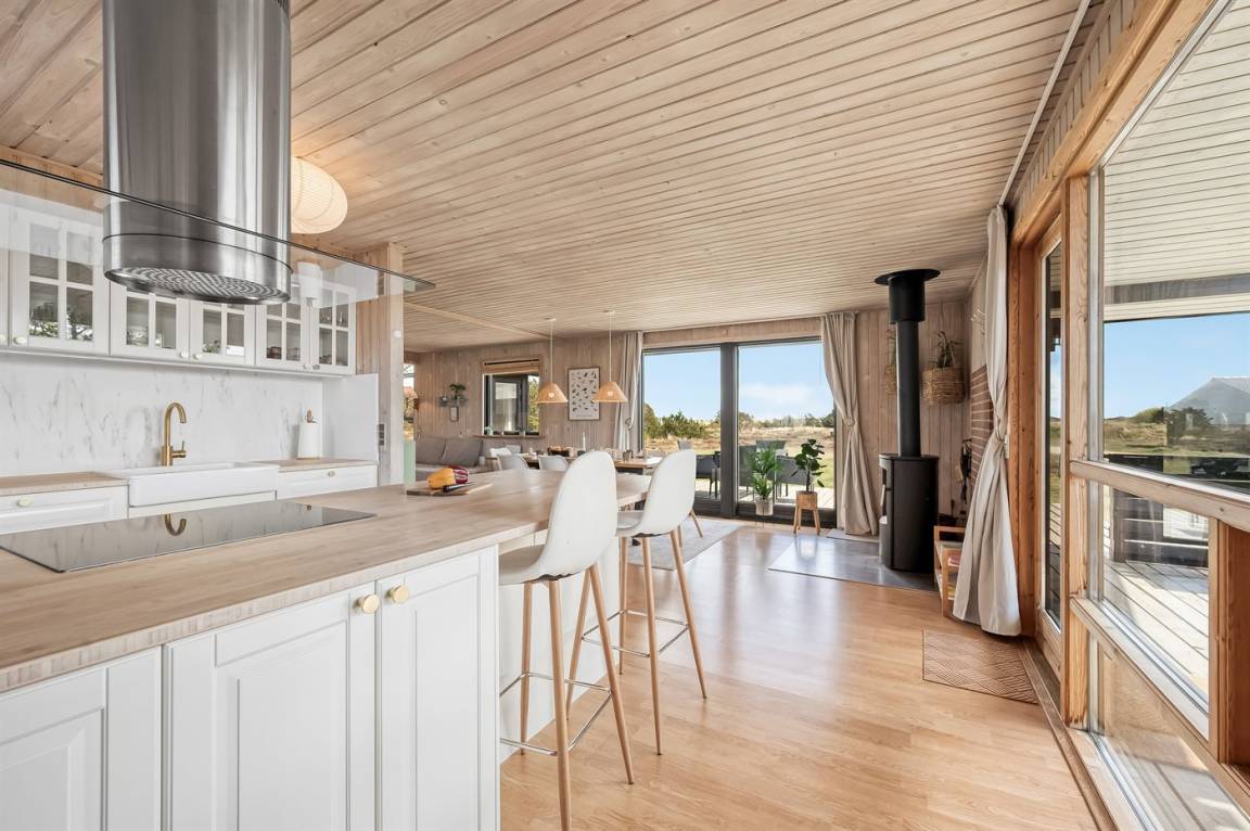 Dieses gepflegte und gut eingerichtete Ferienhaus liegt auf einem großen mit Heidekraut bewachsenen Natur-/Dünengrundstück. Durch die große Fensterfront im Wohnzimmer haben Sie eine herrliche Aussicht auf das Naturschöne Gebiet mit der Förde im Hintergrund.