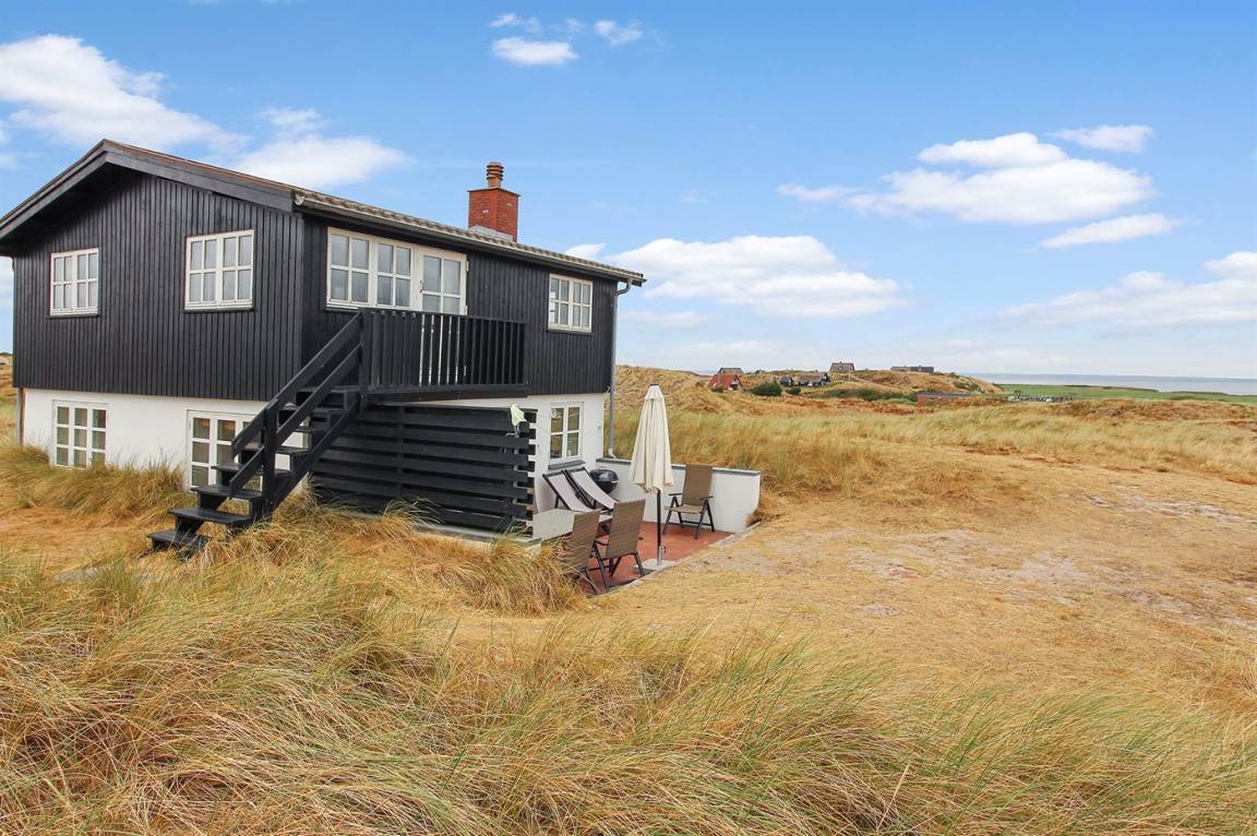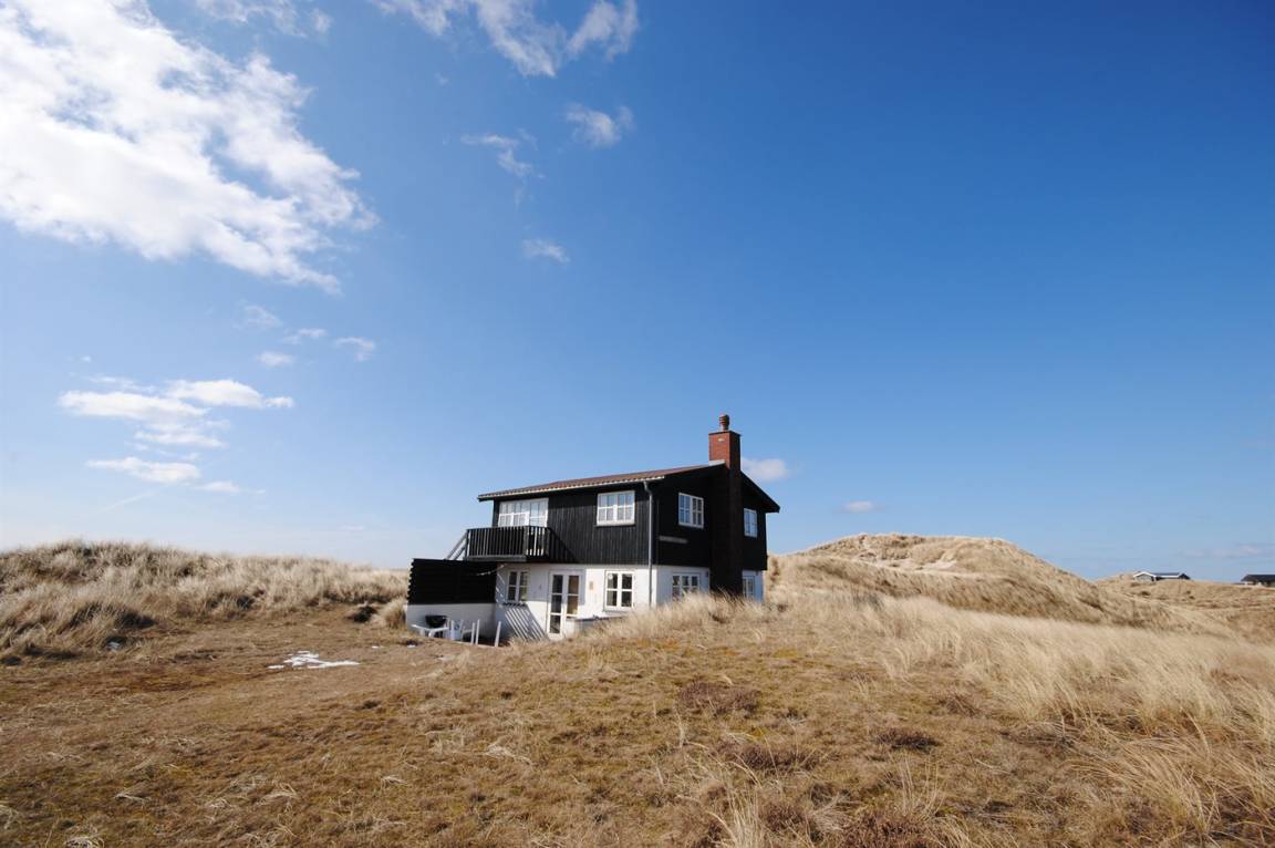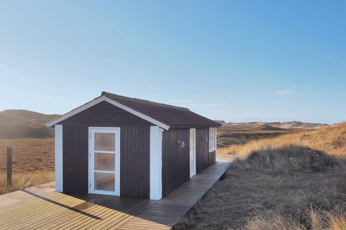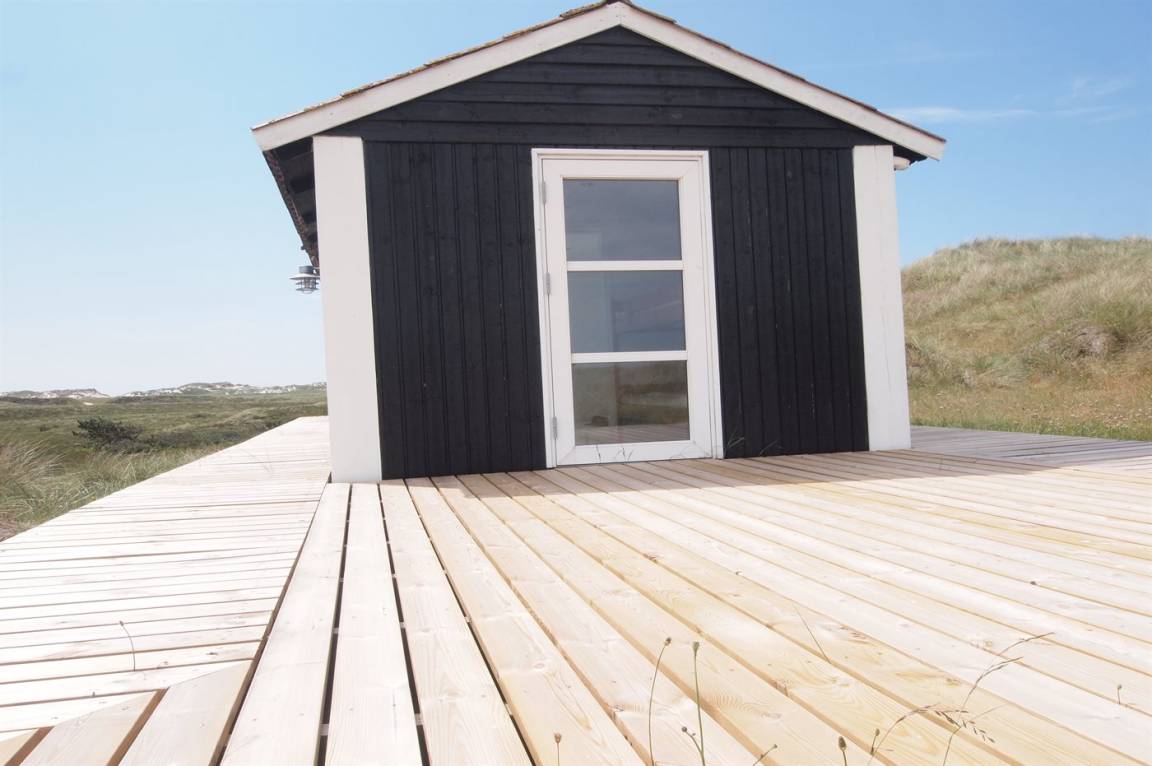 DraußenDie Ferienunterkunft liegt auf einem 327000 m² großen Dünengrundstück. Die Entfernung zum Meer beträgt 750 m. Die Entfernung zum Fjord beträgt 800 m. Die nächste Einkaufsmöglichkeit liegt 1500 m entfernt. Es steht ein 20 m² Terrassenareal zur Verfügung.
