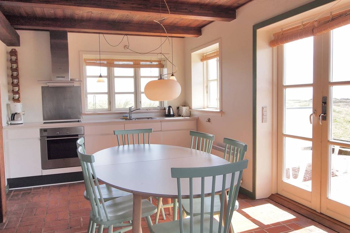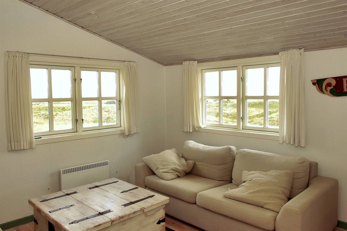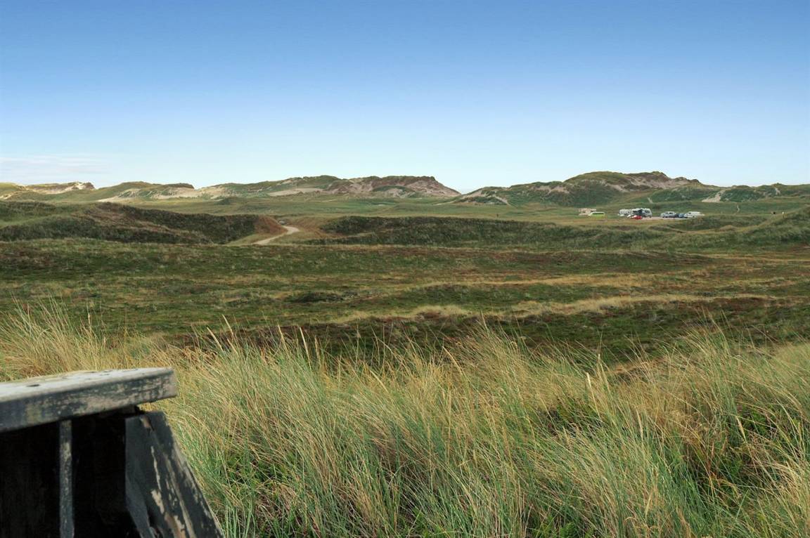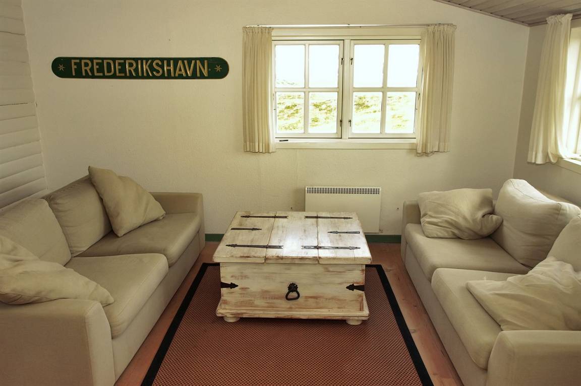 DraußenDie Ferienunterkunft liegt auf einem 327000 m² großen Dünengrundstück. Die Entfernung zum Meer beträgt 750 m. Die Entfernung zum Fjord beträgt 800 m. Die nächste Einkaufsmöglichkeit liegt 1500 m entfernt. Es steht ein 20 m² Terrassenareal zur Verfügung.