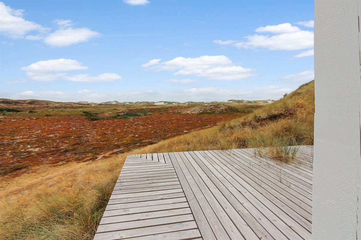 Auf einem großen Dünengrundstück in ruhiger Umgebung und mit Panoramaaussicht auf den Ringkøbing Fjord, sowohl vom Haus als auch vom Grundstück, liegt dieses schöne Ferienhaus in 2 Etagen gebaut. ÜBRIGENS: AUF DEM GRUNDSTÜCK LIEGT EIN GÄSTEHAUS, DAS MIT 4 KOJENPLÄTZE, KLEINEM BADEZIMMER, KÜCHE UND AUFENTHALTSRAUM EINGERICHTET IST. DAS GÄSTEHAUS KANN GEGEN ZAHLUNG VON EINEM MEHRPREIS GEMIETET WERDEN – FÜR WEITERE INFORMATIONEN WENDEN SIE SICH BITTE AN DAS SERVICEBÜRO IN BJERREGAARD.