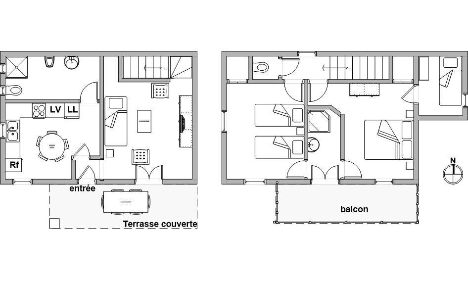 Erdgeschoss: Küche, Wohnzimmer mit Sofa-Bett (90cm), Dusche mit wc. Obergeschoss: Schlafzimmer mit 2 Einzelbetten (90cm), ein Schlafzimmer mit einem Doppelbett (160cm) und eine große Terrasse. Ein kleines Zimmer (4,84 m²) angrenzende mit Einzelbett (90cm), zugänglich Waschraum mit zwei Schlafzimmer, getrenntes wc. Zentralheizung. Auf Wunsch Baby-Ausstattung.
