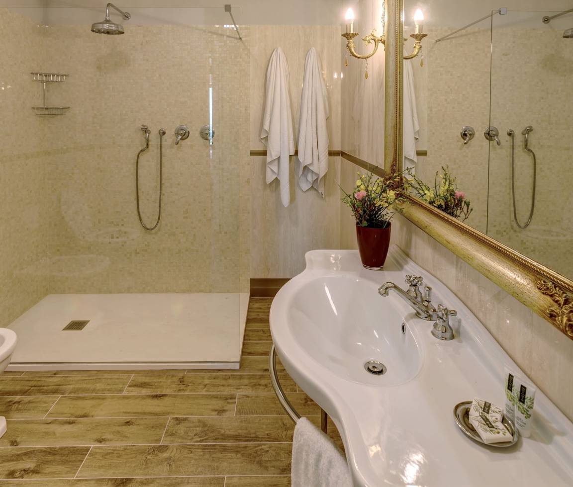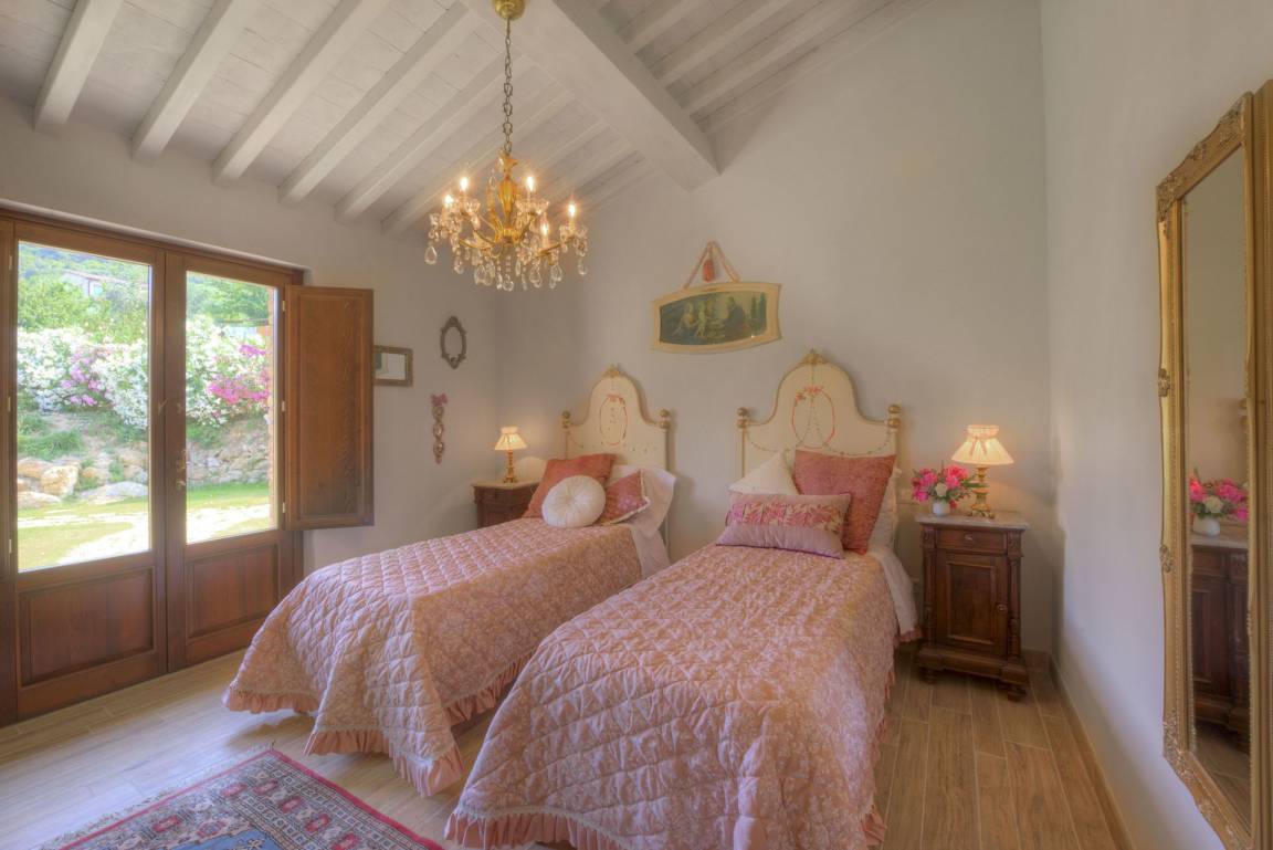 Schlafzimmer mit Bad 2: zwei Einzelbetten, WiFi Internet, Klimaanlage, Waschbecken, WC, Bidet, Dusche, Fön.