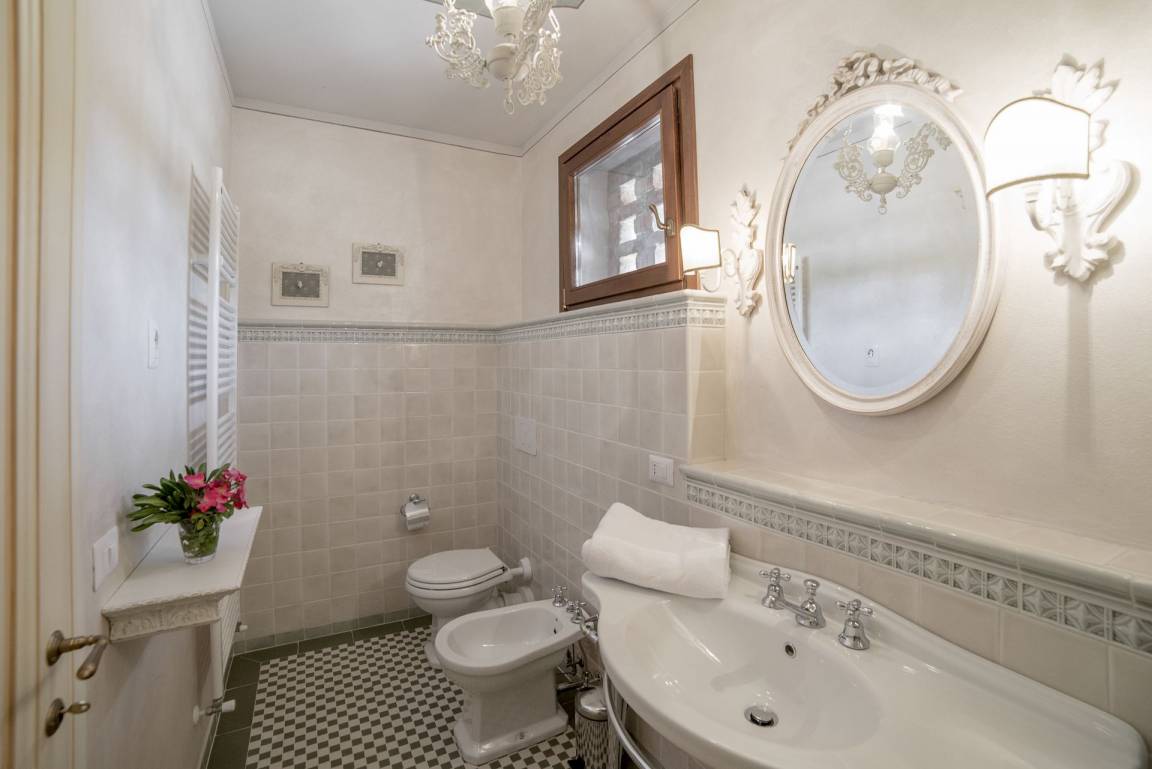 Schlafzimmer mit Bad 2: Doppelbett, WiFi Internet, Klimaanlage, Waschbecken, WC, Bidet, Dusche, Fön.