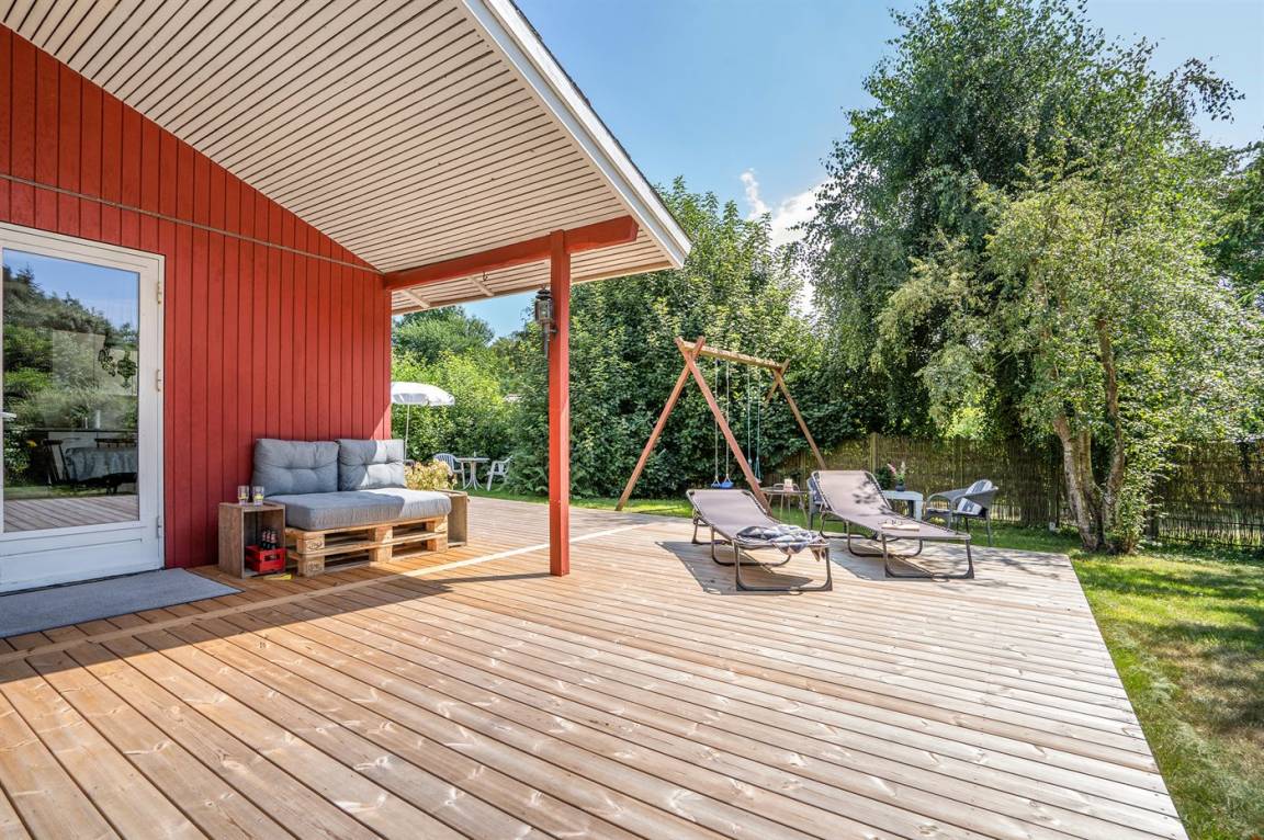 Gemütliches Ferienhaus auf einem ungestörten Grundstück und nur wenige Gehminuten vom kinderfreundlichen Strand entfernt.