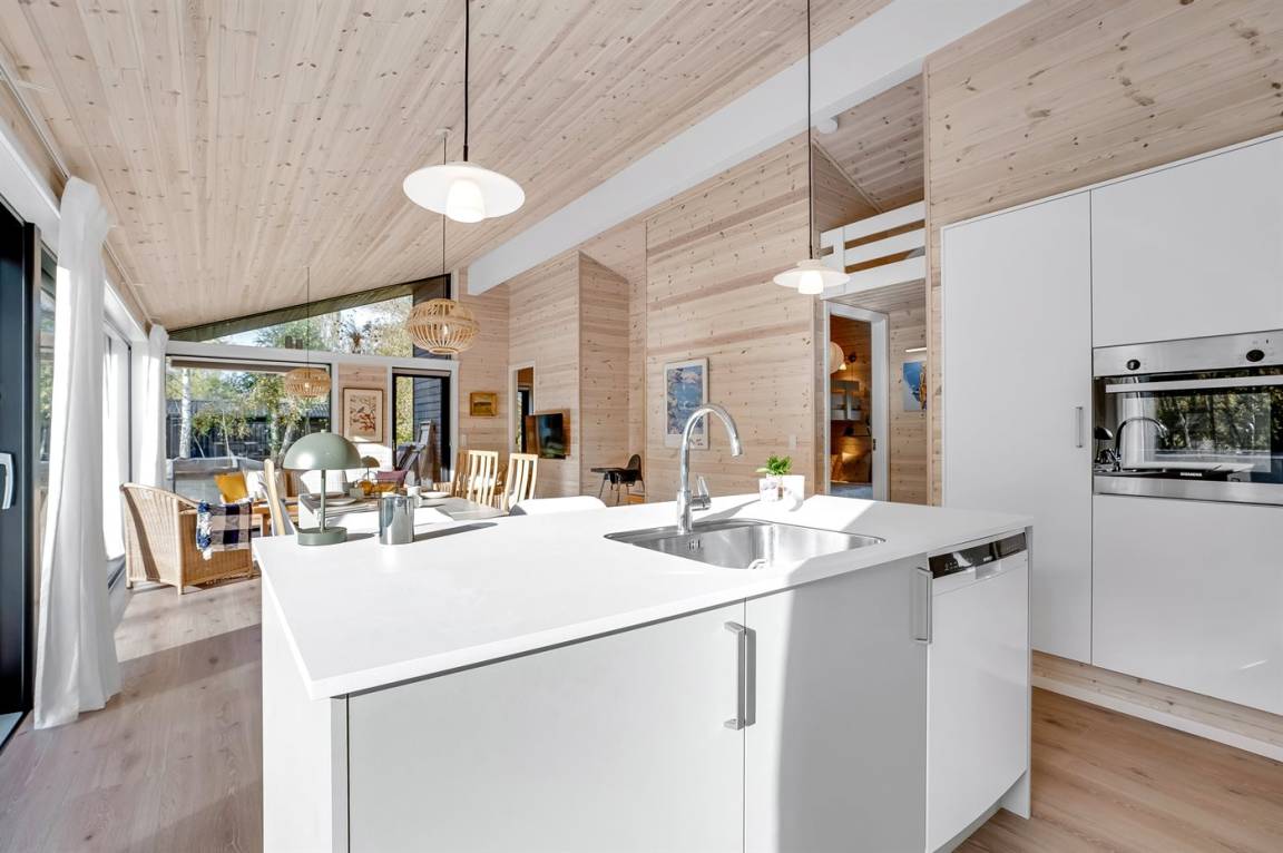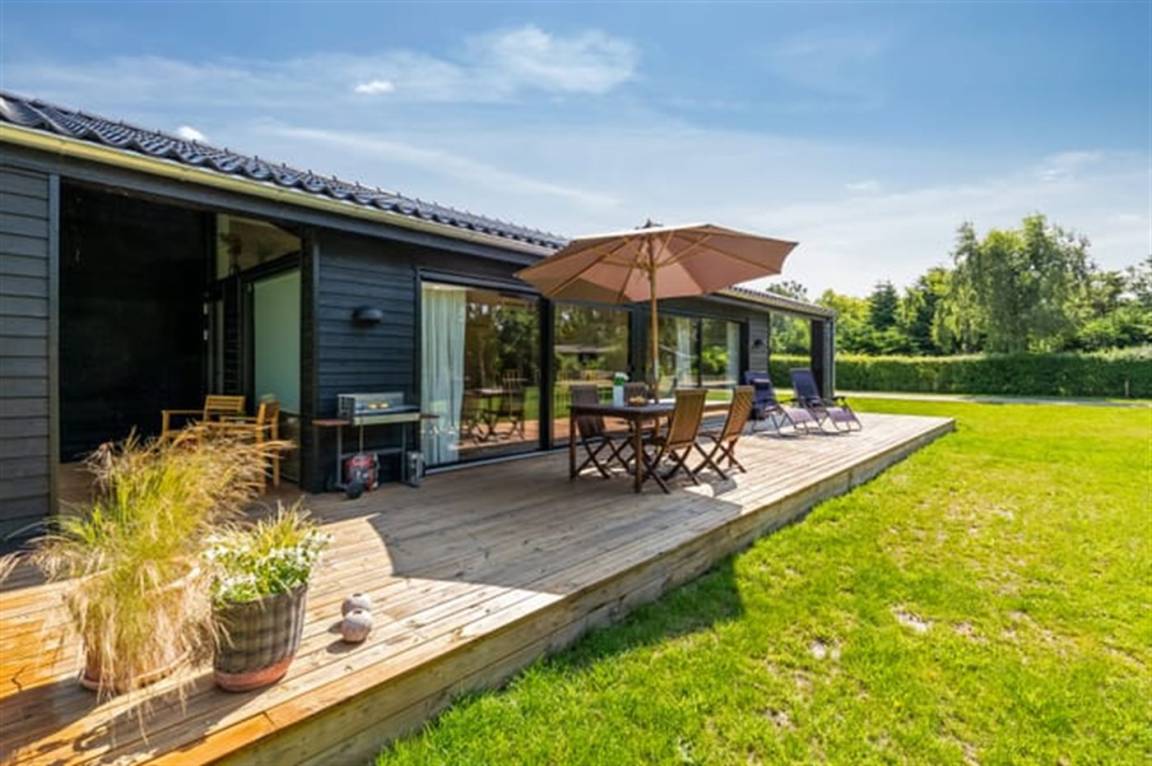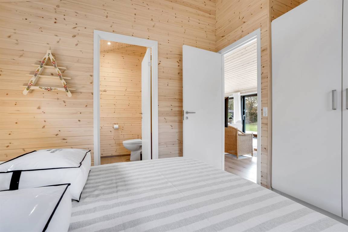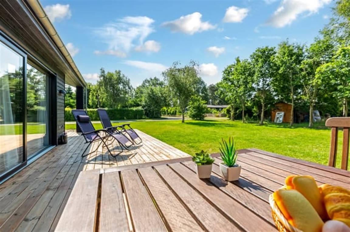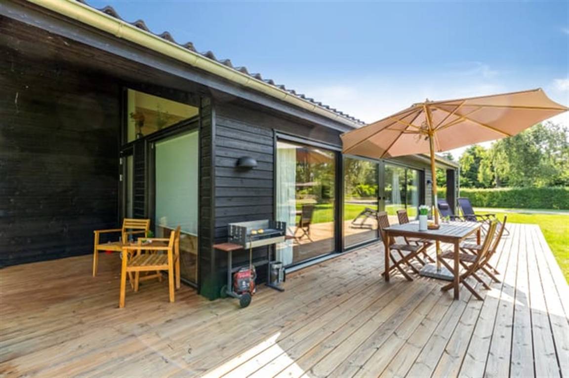 Ein schöner Garten mit Holzterrasse lädt dazu ein, zu entspannen, Sonne zu tanken und an schönen Sommerabenden zu grillen. Hier hast du auch die Möglichkeit, dich unter die überdachte Terrasse zurückzuziehen. Das Haus liegt nicht weit von einem wunderbaren Sandbadestrand entfernt.