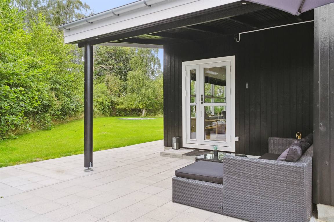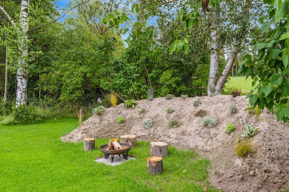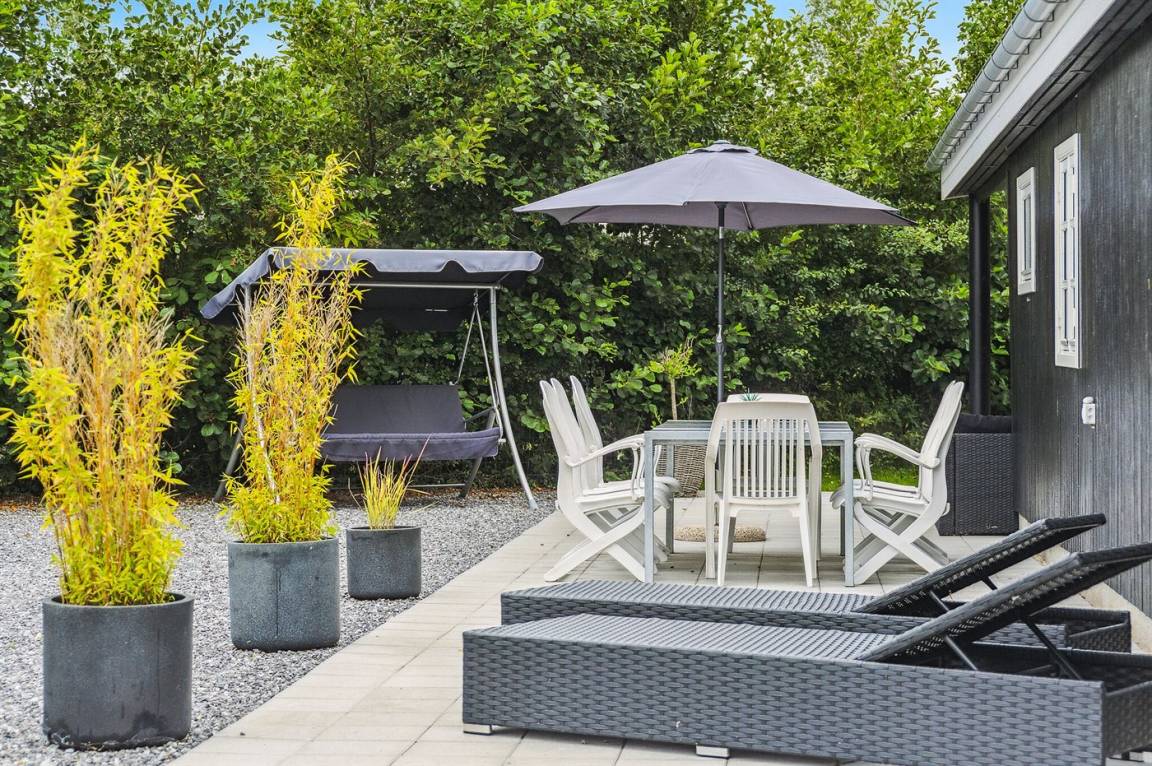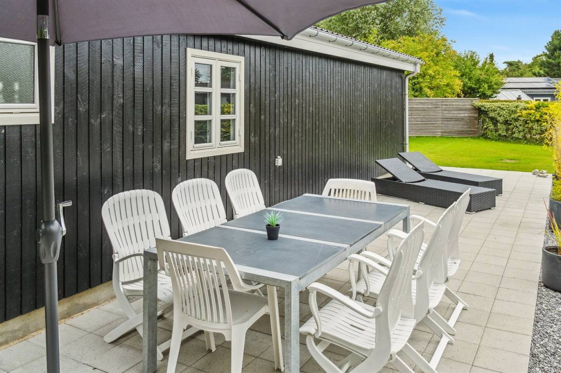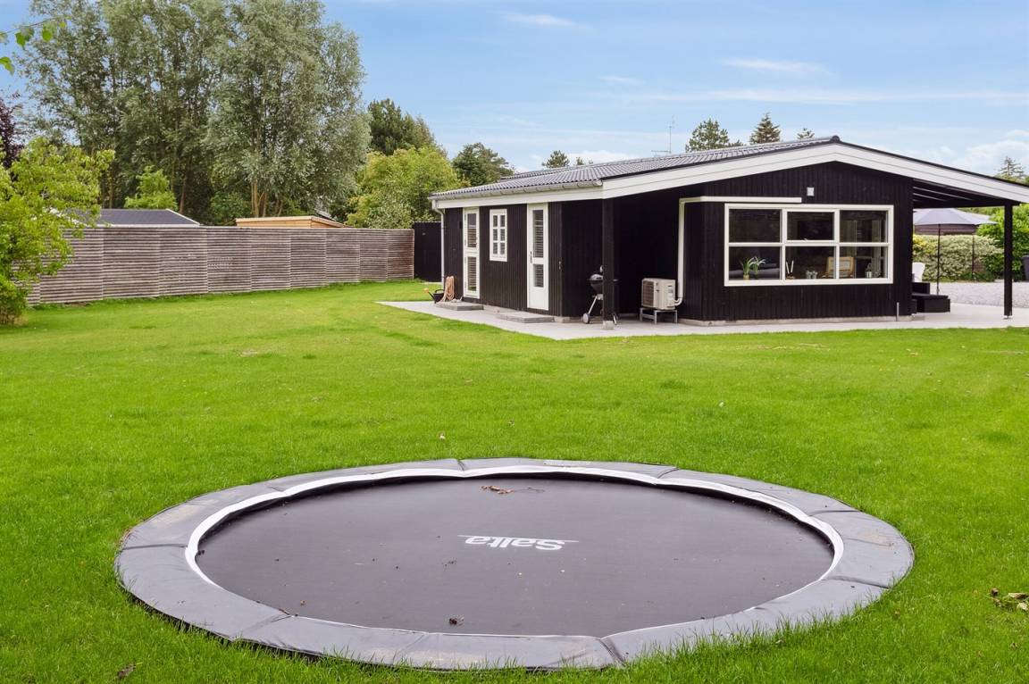 Das Ferienhaus steht auf einem 1060 m² großen, komplett eingezäunten Gartengrundstück. Es gibt eine große offene Terrasse sowie eine kleine überdachte Terrasse. Im Garten gibt es ein Trampolin und eine gemütliche Lagerfeuerstelle. Die gesamte Umgebung ist sehr ruhig, und es gibt viel Platz sowohl im Ferienhaus als auch im Garten, der zu Ballspiele und andere Aktivitäten im Freien einlädt. Im Zeitraum vom 01.04 bis zum 01.10 steht eine Außendusche zur Verfügung. Ein Grill ist vorhanden. Gute Parkmöglichkeiten.