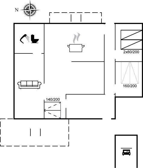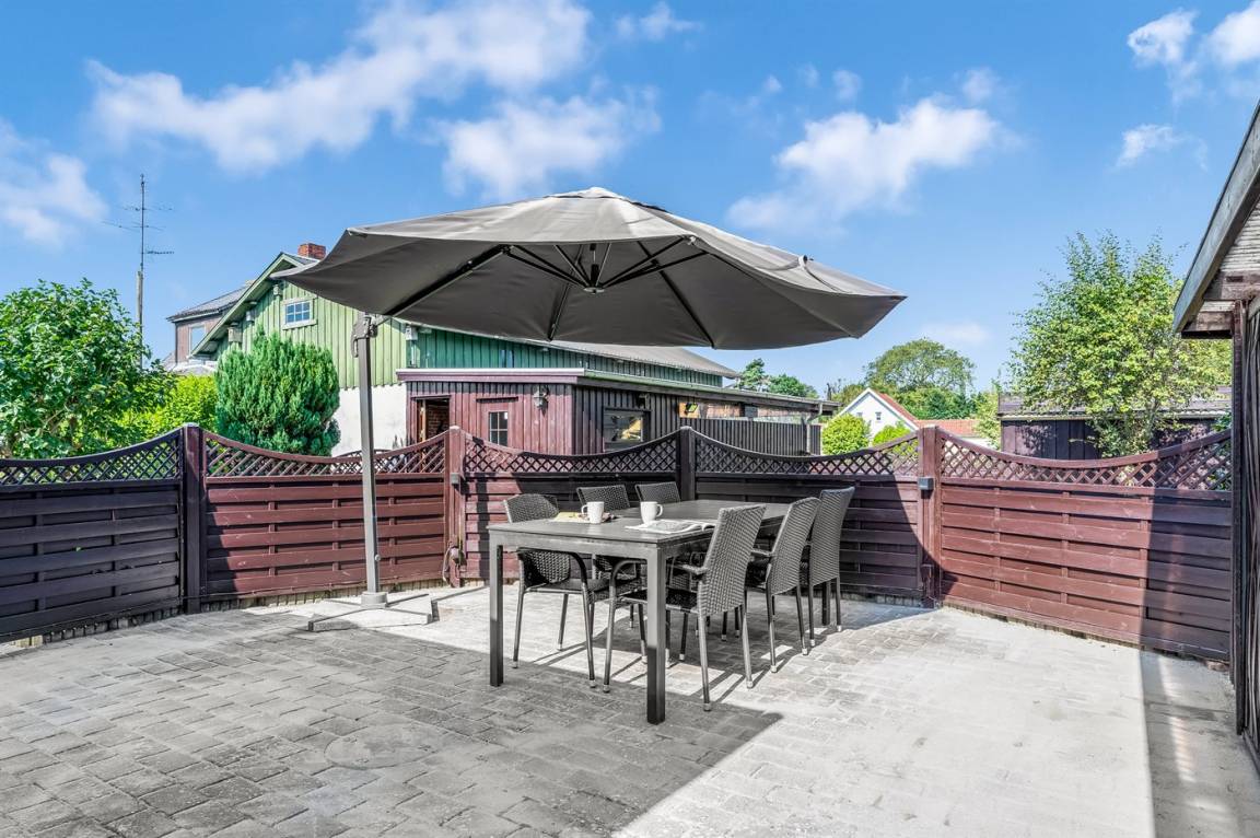 DraußenDie Ferienunterkunft liegt auf einem 433 m² großen Naturgrundstück. Das Grundstück ist eingezäunt. Die Entfernung zum Meer beträgt 1300 m. Die nächste Einkaufsmöglichkeit liegt 3500 m entfernt. Es steht ein offenes Terrassenareal zur Verfügung. Außerdem gibt es überdachte Terrasse. Zutritt zu einem Wintergarten. Sandkasten. Trampolin. Es steht ein Grill zur Verfügung. Es steht ein Carport zur Verfügung. Parkplatz auf dem Grundstück.