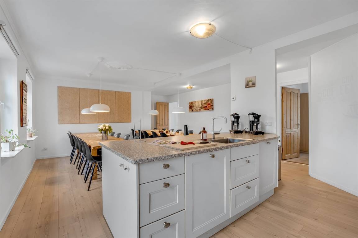 Dieser ehemalige Bauernhof eignet sich für 24 Personen sowie 2 Kleinkinder bis zu 3 Jahren. Die Ferienunterkunft hat eine Wohnfläche von 215 m², ist 2-stöckig, und wurde 1925 gebaut. 2017 wurde die Ferienunterkunft renoviert. Haustiere dürfen nicht mitgebracht werden. Die Ferienunterkunft ist mit energiesparender Wärmepumpe ausgestattet. Fußbodenheizung in allen Räumen. Die Ferienunterkunft ist mit Waschmaschine ausgestattet. Wäschetrockner. Tiefkühlmöglichkeit mit 60 Liter Nutzinhalt. Es gibt außerdem einen Kaminofen. Für die jüngsten Feriengäste sind 2 Kinderhochstühle vorhanden.