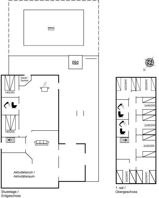 SchlafverhältnisseDie Schlafplätze verteilen sich auf 9 Schlafräume. 4 Schlafplätze in Doppelbetten. 14 Schlafplätze in Einzelbetten. 6 Schlafplätze auf Matratzen. 6 von diesen Schlafplätzen befinden sich im offenen Obergeschoss. Ferner stehen 2 Kinderbetten zur Verfügung.