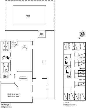 In ländlicher Umgebung finden Sie diese große Ferienhaus, das für mehrere Familien, die zusammen Urlaub machen möchten, geeignet ist. Hier gibt es viele Freizeitangebote für sowohl drinnen als auch draußen. Die Schlafplätze befinden sich hauptsächlich im 1. Stock, samt in einem offenen Obergeschoss, wo Sie 6 der Schlafplätze finden können. Der Hobbyraum befindet sich in Verlängerung zum Wohnzimmer. Zum Haus gehört ein Außenswimmingpool der vom 01.06.-31.08. zur Verfügung steht.