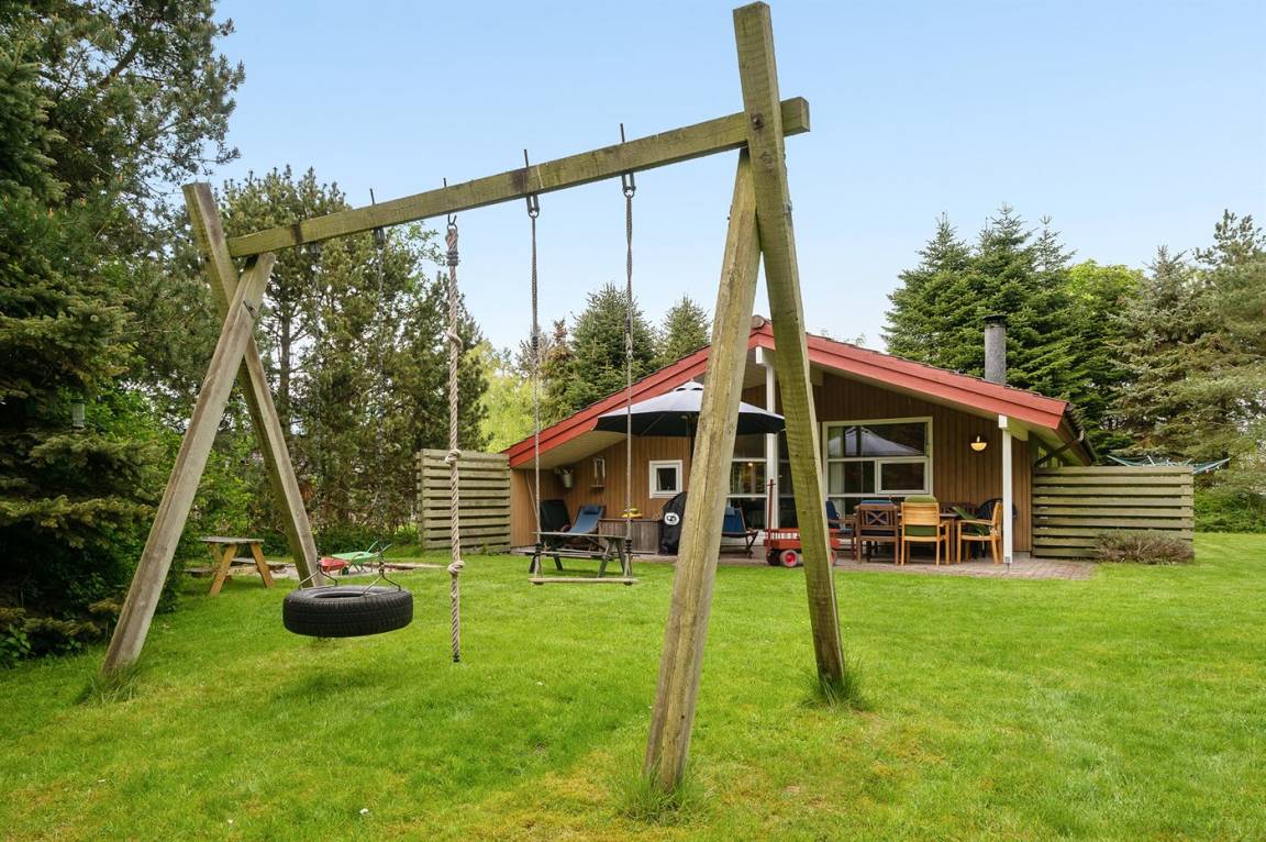 DraußenDie Ferienunterkunft liegt auf einem 1200 m² großen Naturgrundstück. Die Entfernung zum Meer beträgt 200 m. Die nächste Einkaufsmöglichkeit liegt 800 m entfernt. In einem Abstand von 5000 m gibt es einen Golfplatz. Es steht ein 20 m² Terrassenareal zur Verfügung. Außerdem gibt es 16 m² überdachte Terrasse. Schaukel. Sandkasten. Es steht ein Grill zur Verfügung. Parkplatz auf dem Grundstück.