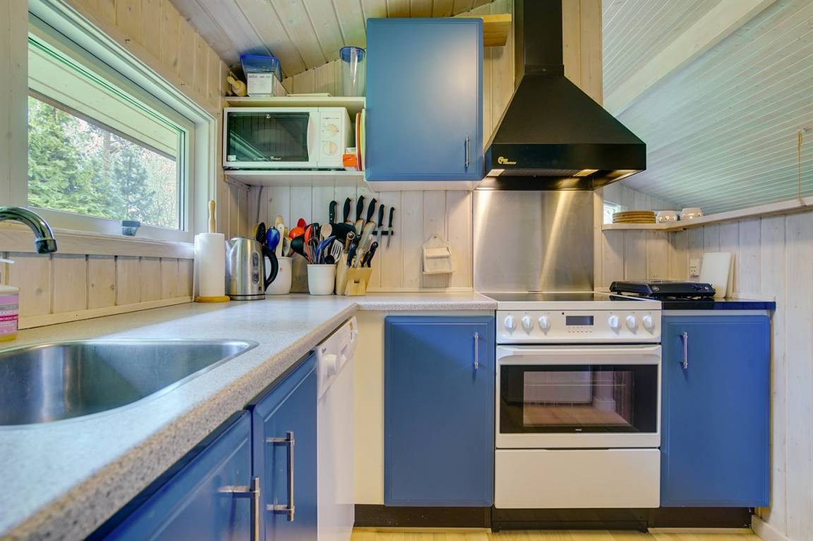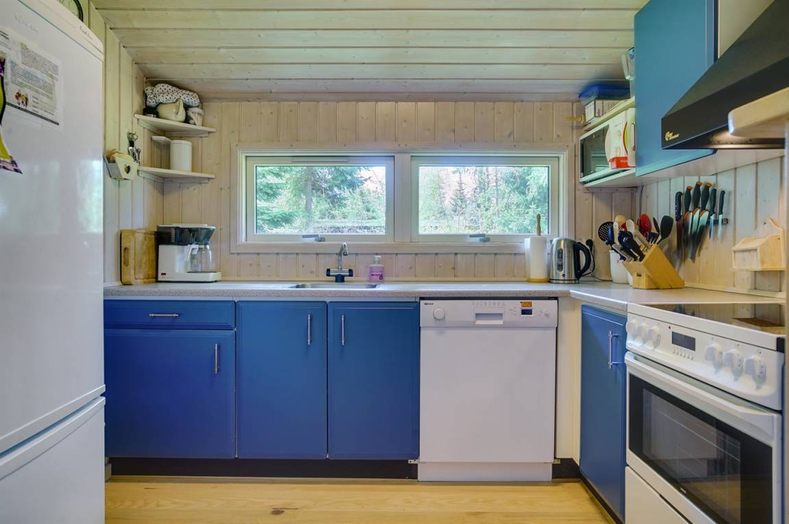„The vacation at the holiday home: Køkken. opvaskemaskine øverste kurv faldt ned ved udtrækning. komfur ekstrem langsom til at varme op. køleskab var meget lille til 7 personer.“