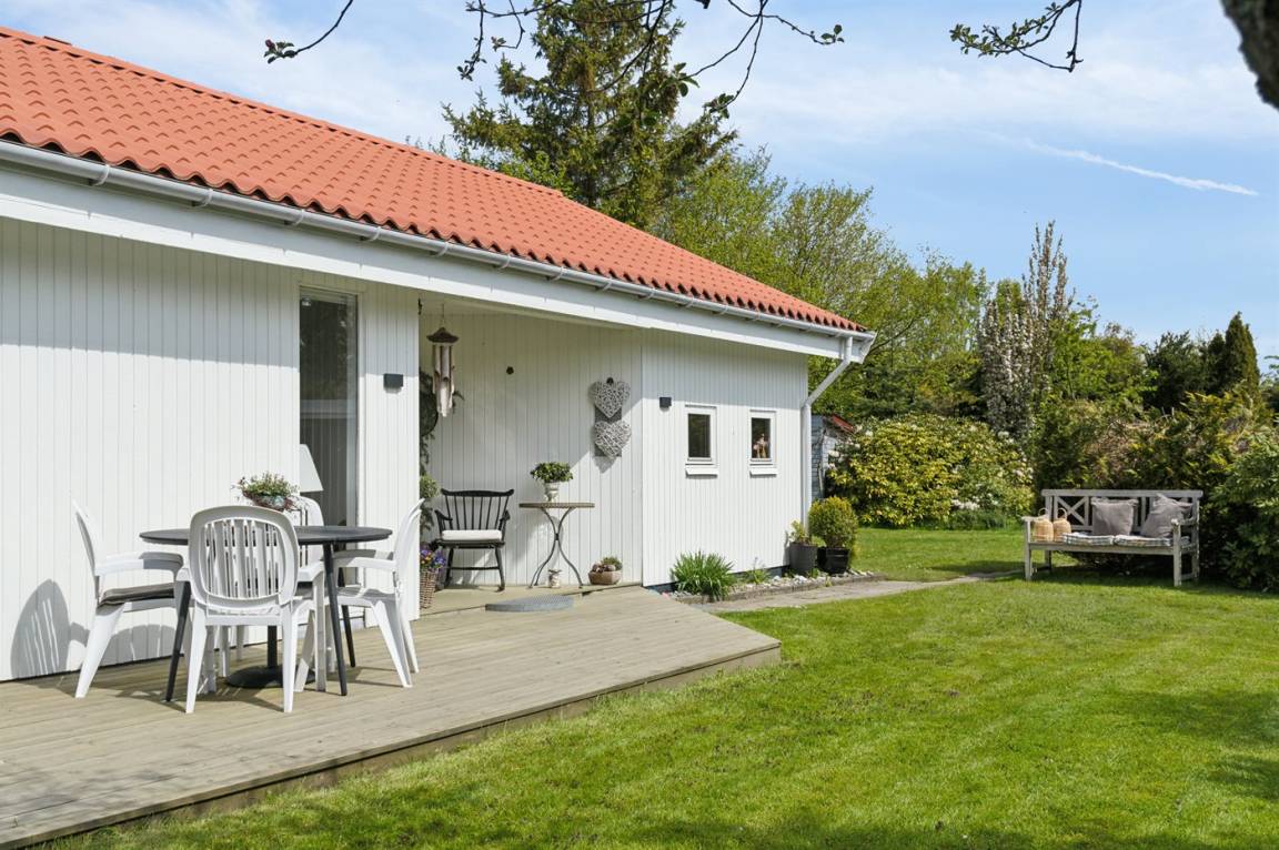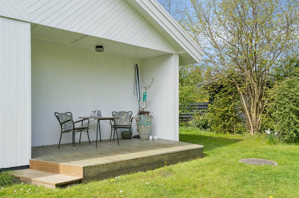 Gemütliches Ferienhaus in der Nähe von Dänemarks schönstem Strand. Gute Morgen- und Abendterrassen mit Gartenmöbeln.
