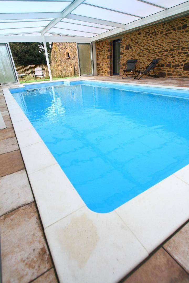 Im Erdgeschoss: ein Esszimmer mit Küche, ein großes Wohnzimmer (90 m²) (kleiner Empfangsbereich) mit direktem Zugang zum beheizten und überdachten Privatpool unter der Veranda (Maße: 9 m x 4 m – Tiefe: 1,20 m bis 1,60 m) mit behindertengerechtem Sanitärbereich, ein Schlafzimmer mit einem 160 x 200 cm großen Bett und eigenem Bad sowie separatem WC. Im ersten Stock: ein Schlafzimmer mit einem 160 x 200 cm großen Bett, das in zwei 90 x 200 cm große Betten umgewandelt werden kann, mit eigenem Bad und separatem WC, ein Schlafzimmer mit einem 160 x 200 cm großen Bett und zwei 90 x 200 cm großen Etagenbetten, eigenem Bad und separatem WC. Parken auf einem privaten Parkplatz.