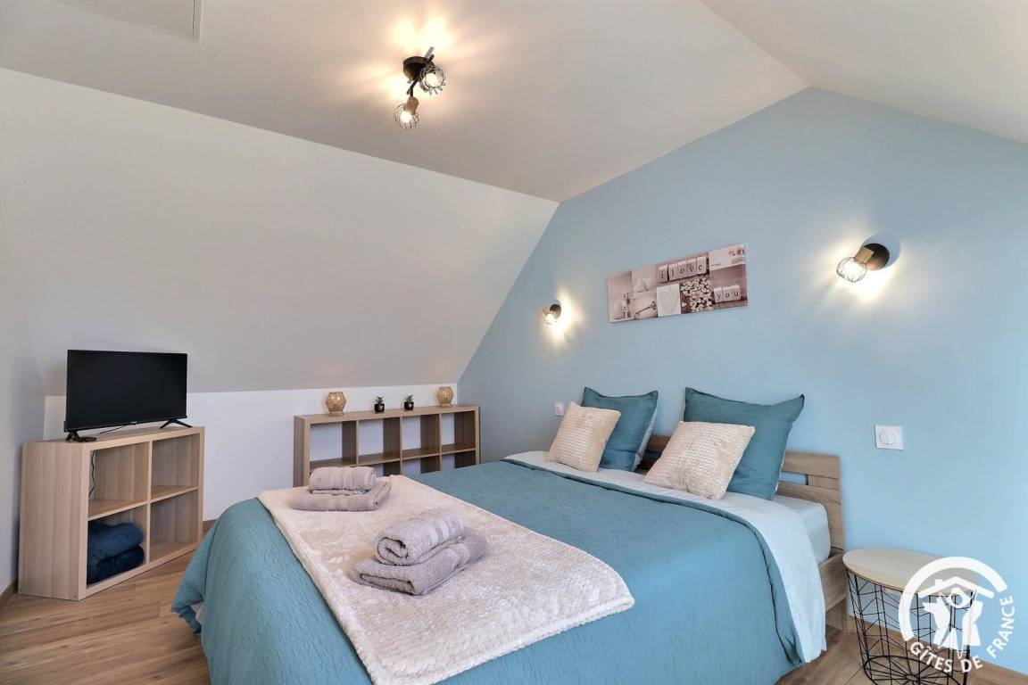„Le gîte est tout neuf, bien agencé, joliment décoré, confortable, et très bien équipé. On s'y sent bien. Les propriétaires, Choralie et Sylvain, sont sympathiques, et à l'écoute. Merci à eux pour leurs petits cadeaux de bienvenue. Le far breton de Choralie est un régal, et on a apprécié les bonnes tomates du potager de Sylvain, ainsi que les crêpes au sarrasin de la voisine. La visite de l'exploitation familiale nous a également bien plu. Nous avons passé un très bon séjour, et en garderons un agréable souvenir. Christine et Bruno du Nord“