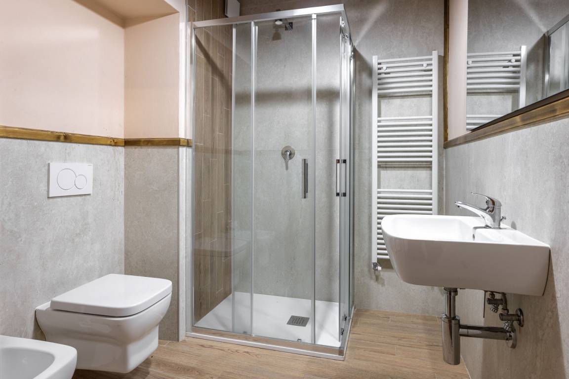 Badezimmer: Waschbecken, WC, Bidet, Dusche, WiFi Internet.