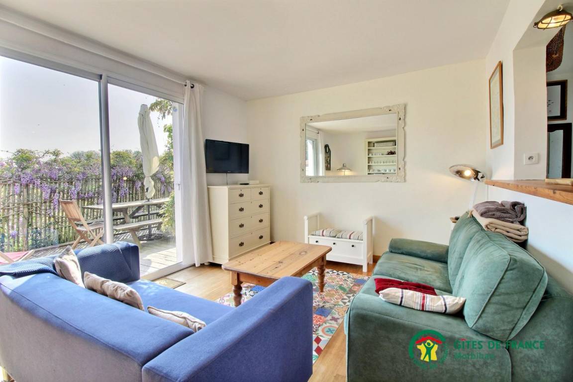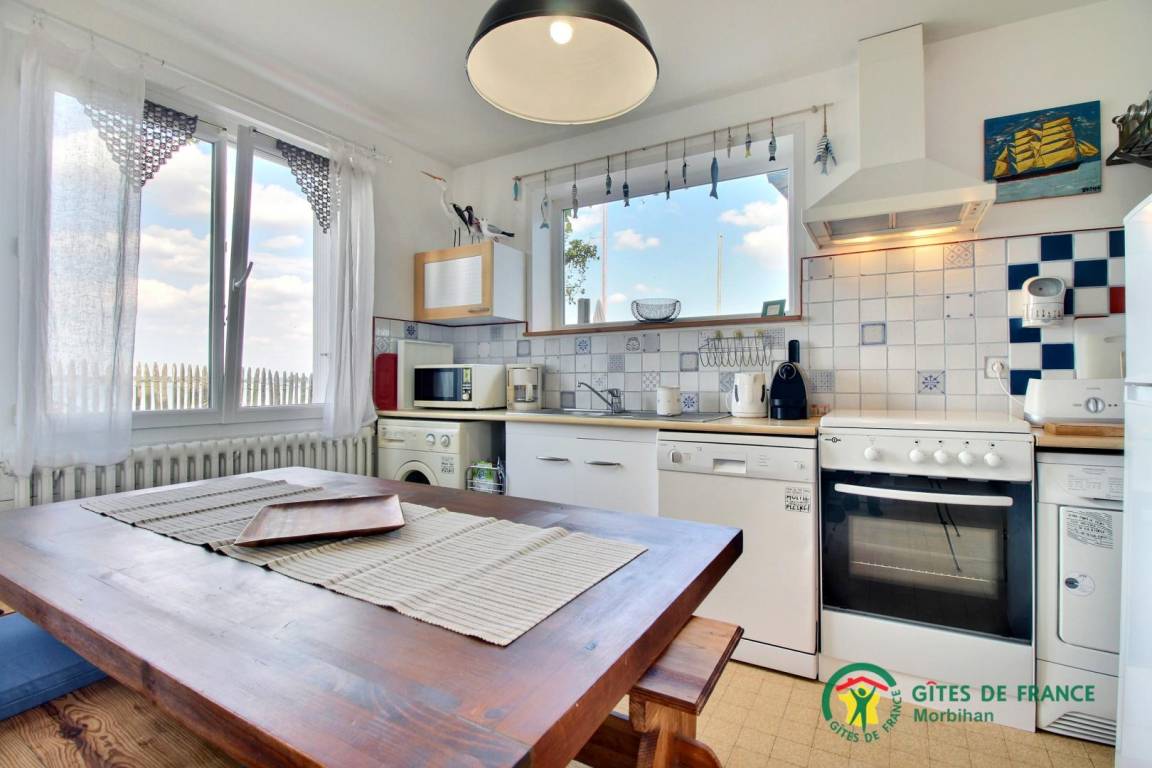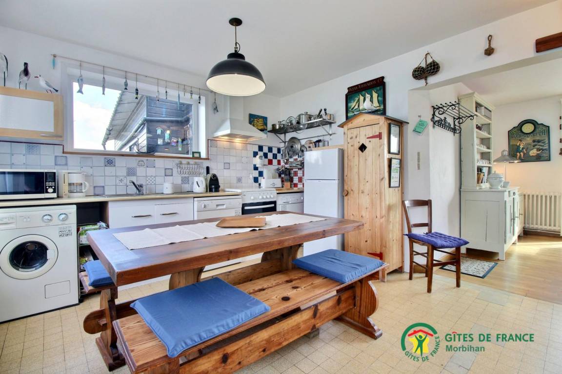 „Lors de la réservation de l'appartement, nous n'étions pas au courant que l'ile aux moines était interdite aux voitures. Après un aimable contact par e-mail, les propriétaires de l'appartement nous ont tout expliqué et donné des informations utiles pour arriver à l'appartement (parking, ferry, vélo). Nous avons été très bien accueillis et nous nous sommes tout de suite sentis à l'aise dans l'appartement. Il est aménagé avec tant de soin et il ne manque vraiment de rien (même des serviettes de plage, un parasol de plage, un kayak...). Il y avait également un choix d'épices, de vinaigre, d'huile, de thé, etc. Les propriétaires habitent à l'étage et étaient disponibles à tout moment en cas de besoin. Pour les besoins quotidiens, on peut se rendre au marché (mardi, mercredi) et dans les petits supermarchés de l'île à vélo. La semaine de détente a été beaucoup trop rapide“