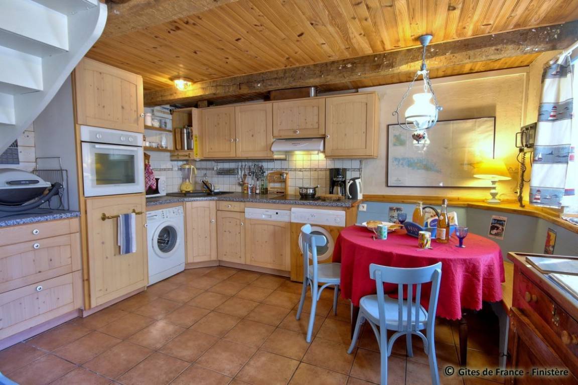 Ein komplett renoviertes altes Haus im Baustil der Insel Sein. Es wurde wie ein Schiff eingerichtet, ist funktionell und komfortabel. Belegung mit 4/5 Personen. EG : Wohnraum mit Kochecke, Essplatz und Holzofen. 1.Stock: 2 Doppelzimmer, Dusche/WC. 2.Stock: Allzweckraum. E-Heizung. WIFI.