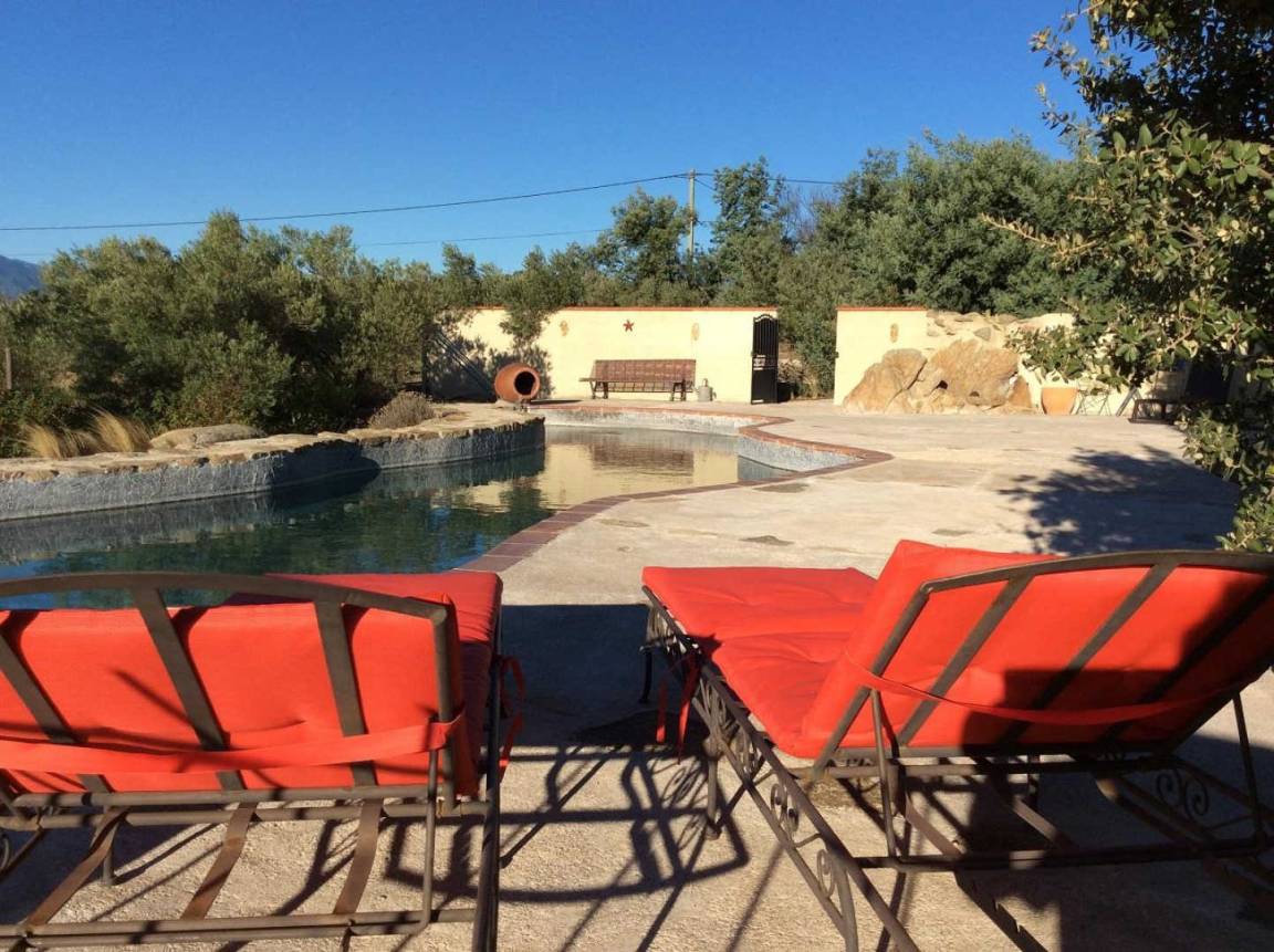 Ein mit den Eigentümern gemeinsam genutzter Swimmingpool, ca. 65 Meter vom Ferienhaus entfernt, lädt zum Verweilen und Genießen erfrischender Momente in ruhiger und sonniger Umgebung ein.