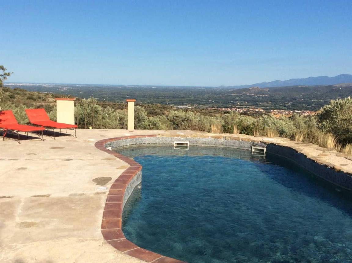 Dieses Ferienhaus im Herzen des Départements ist der ideale Ausgangspunkt, um Katalonien bis nach Barcelona zu entdecken und eine Vielzahl von Outdoor-Aktivitäten zu genießen. Mit Blick auf das Tal bietet das Anwesen einen außergewöhnlichen Panoramablick, der von den Pyrenäen bis zum Mittelmeer reicht. Eingebettet in die Hügel des Ribéral, inmitten von Macchia und Olivenhainen, vereint die